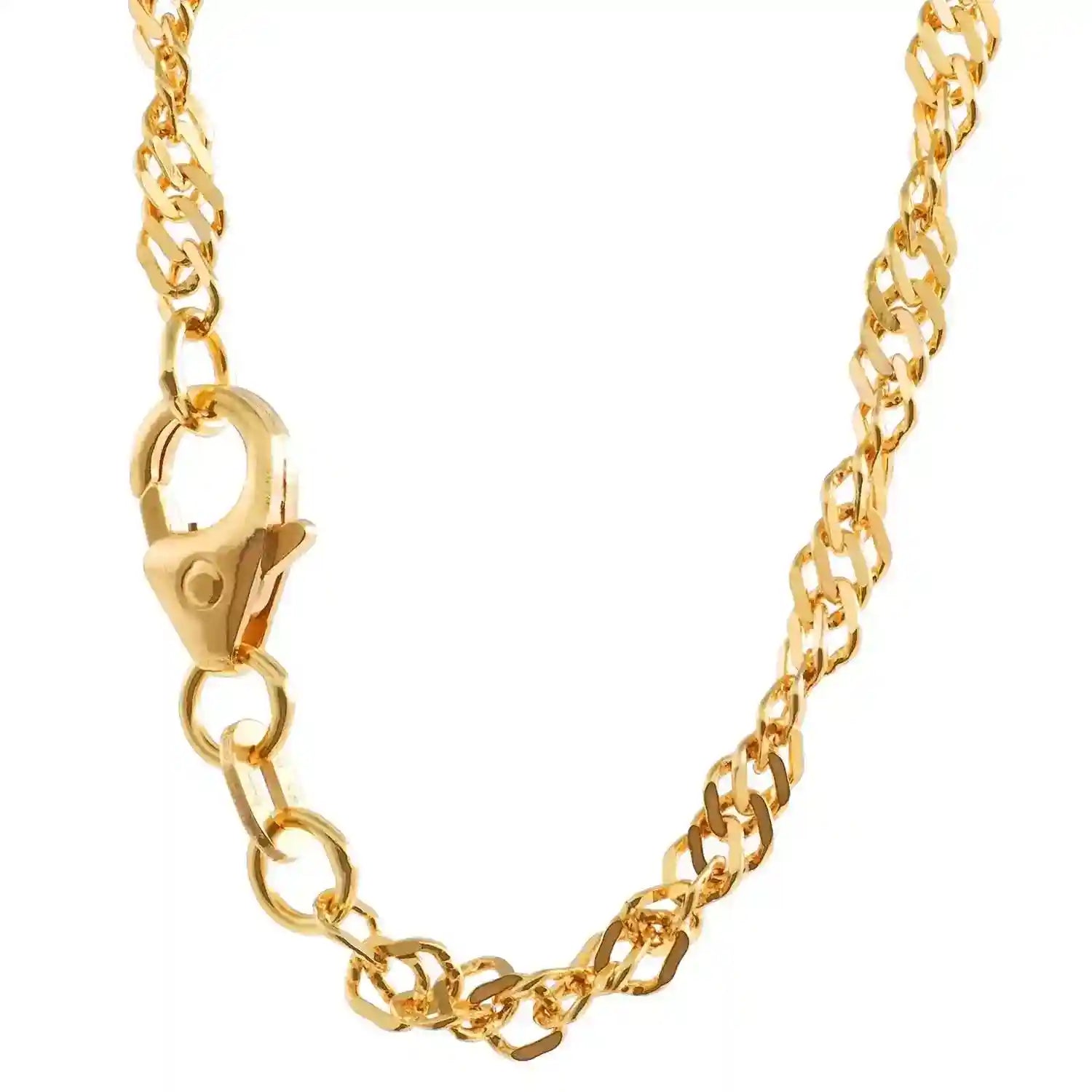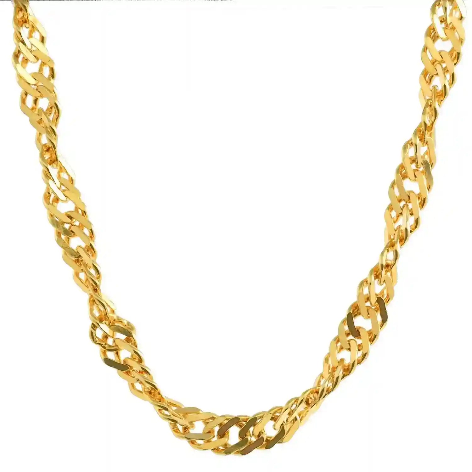 Die Singapurkette ist eine sehr exclusiv wirkende gedrehte Halskette. Sie wird meist von Frauen getragen, und kann mit oder ohne Anhänger verwendet werden. Das Licht wird bei der Singapurkette aus allen Richtungen reflektiert wodurch diese Kette besonders elegant funkelt. Sie wird deshalb gerne zu besonderen Anlässen getragen.