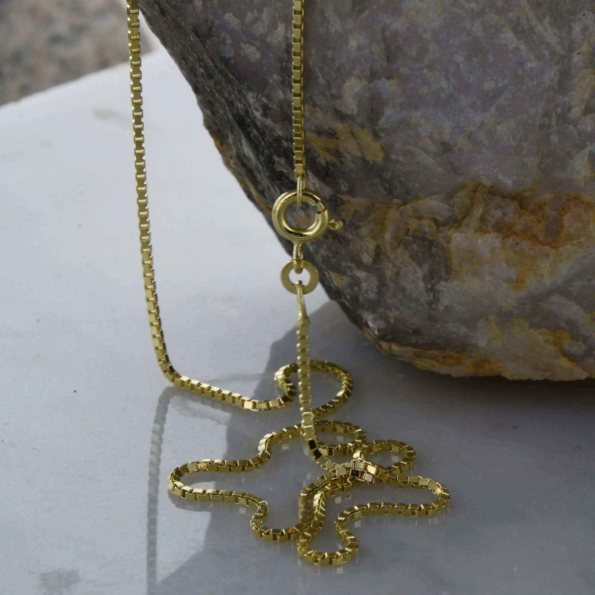 Die Venetianerkette begeistert durch ihre geometrische Einfachheit. Sie besteht aus quadratischen kleinen Kettengliedern und ist sehr flexibel. Die Venetianerkette ist eine robuste, klassische, geschmeidige und regelmässige Kette, die sowohl von Frauen als auch von Männern mit und ohne Anhänger getragen wird.