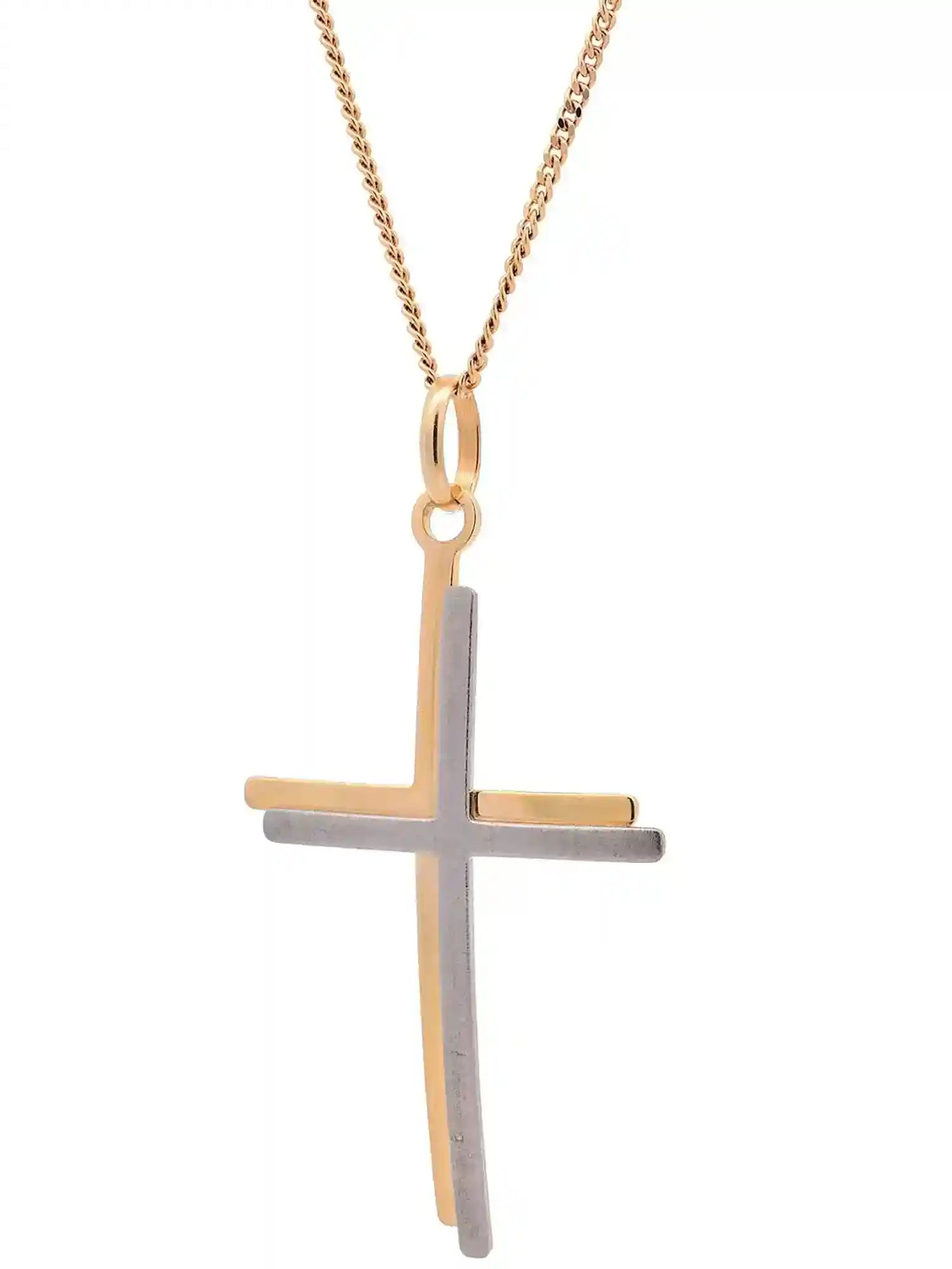 Halskette mit Anhänger Kreuz aus 585 - 14 Karat Gelbgold und Weißgold