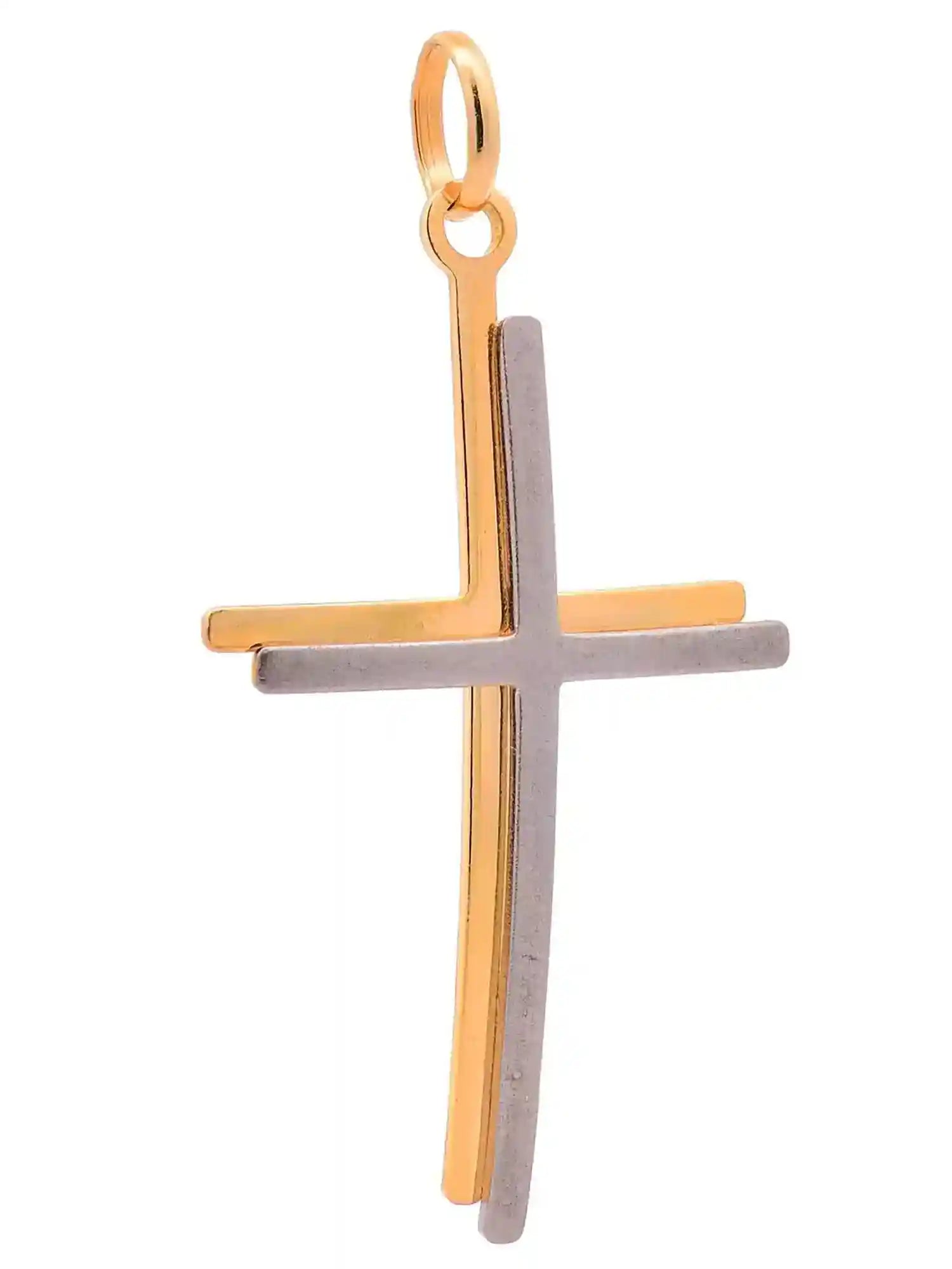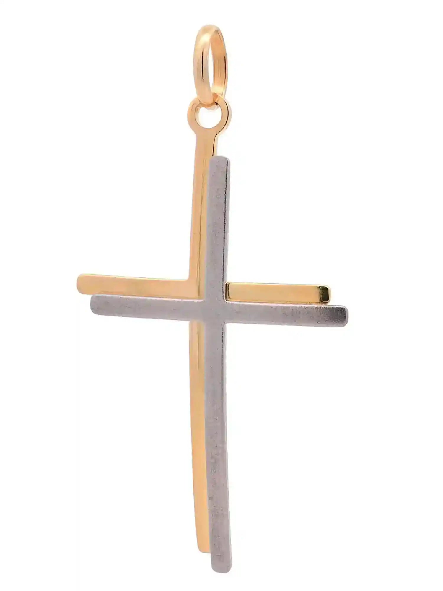 Anhänger aus 585 - 14 Karat Gelbgold und Weißgold, Motiv Kreuz. Der Goldanhänger ist hochglanzpoliert, sehr filigran gearbeitet und wunderschön im Detail.