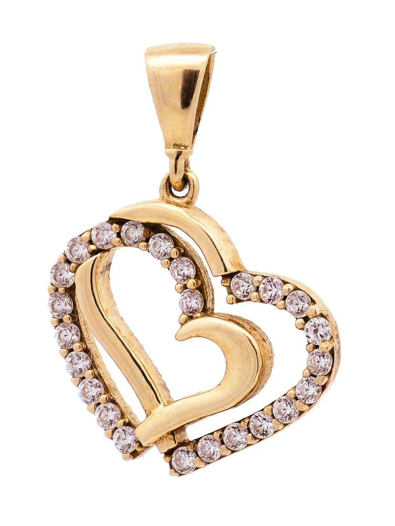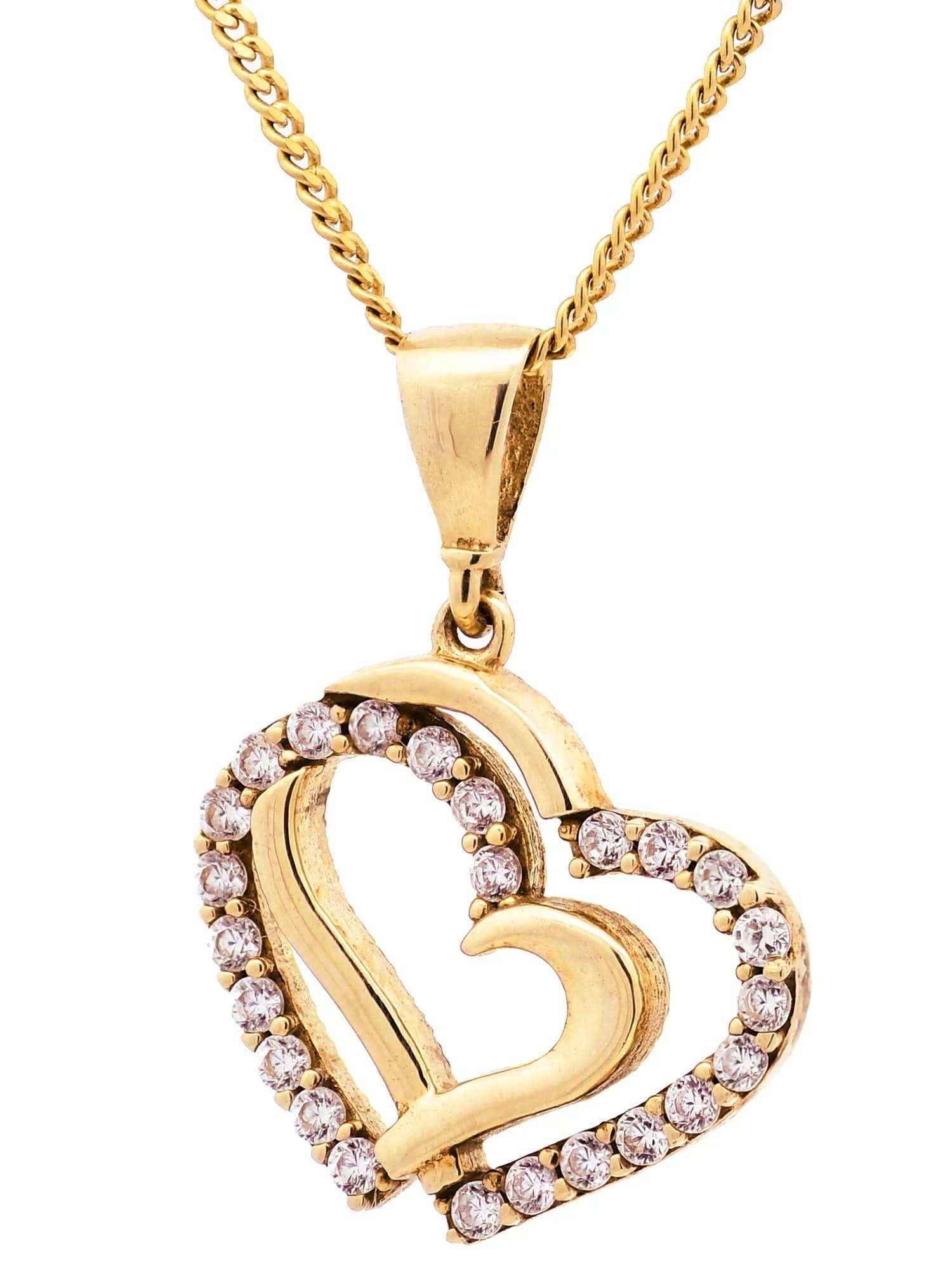 Hochwertiger Gold Anhänger Kettenanhänger Herz aus massiv 333 - 8 Karat Gelbgold mit Zirkonia Stein.
