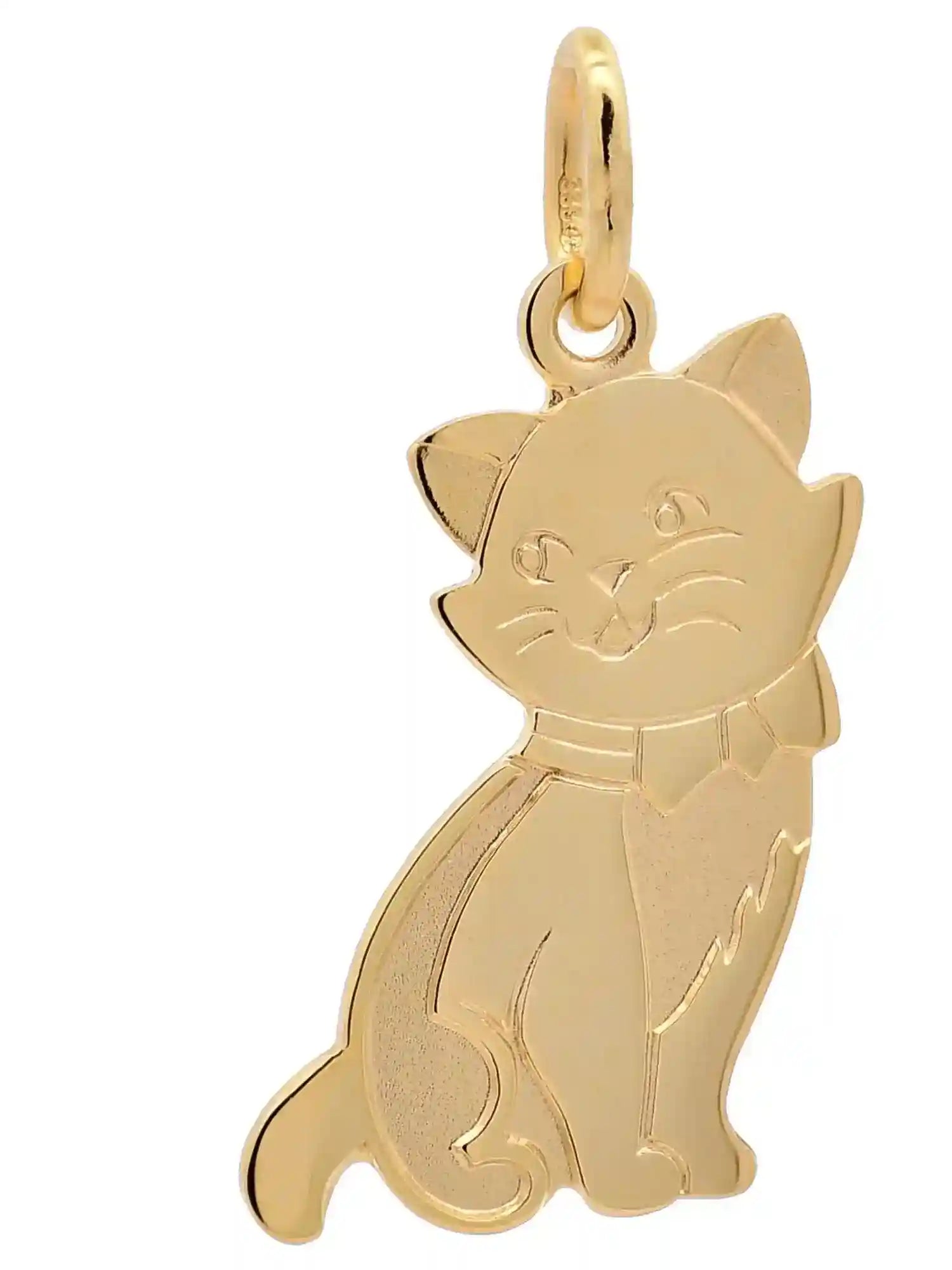 Hochwertiger Gold Anhänger Kettenanhänger Katze aus massiv 333 - 8 Karat Gelbgold.
