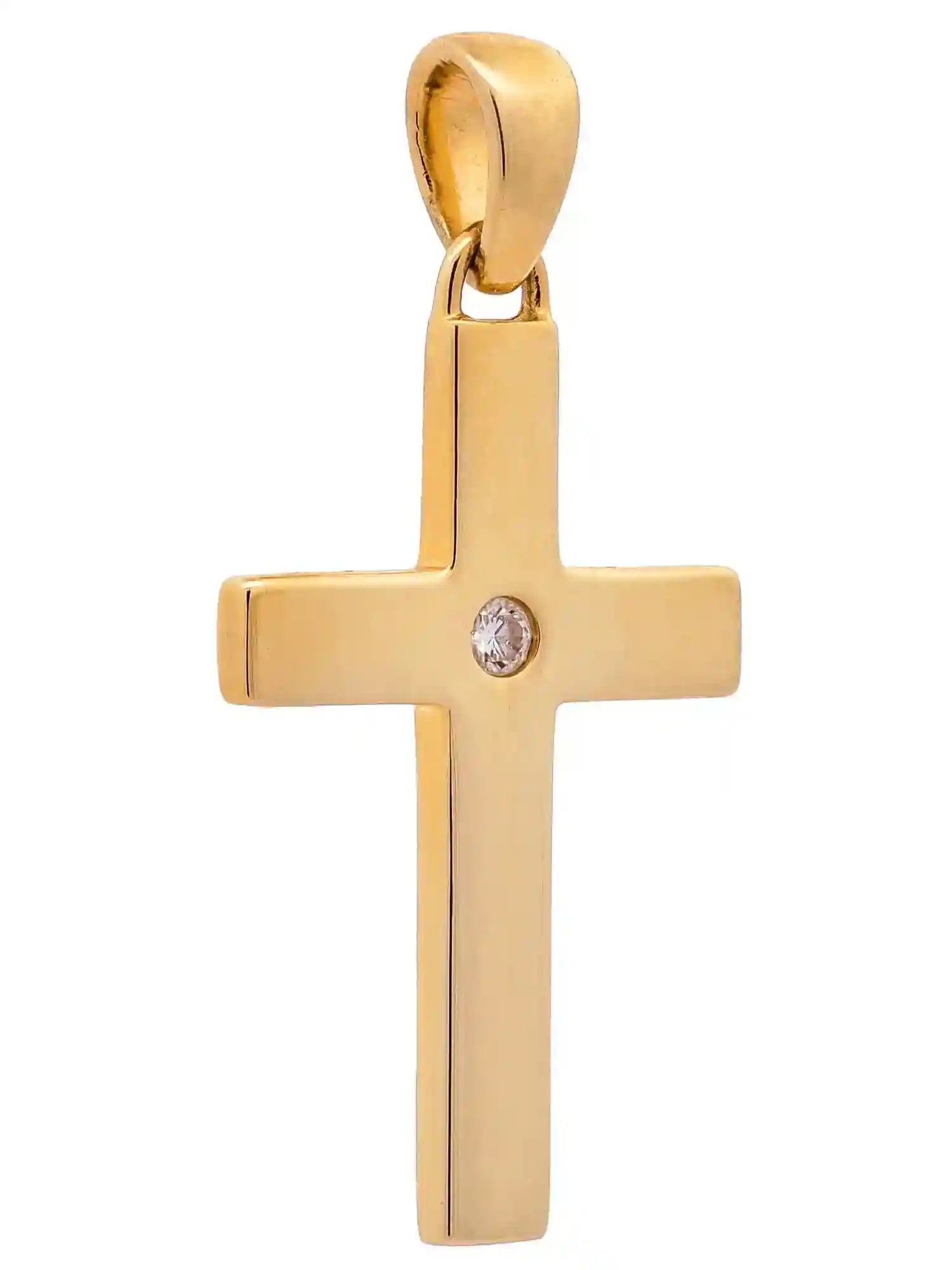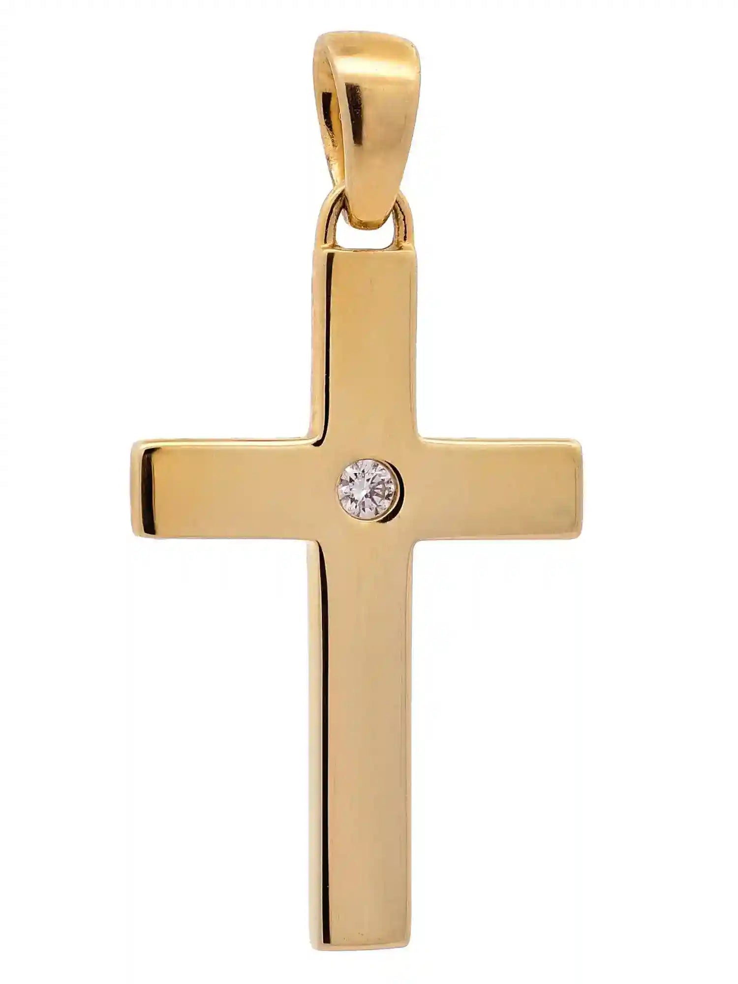 Hochwertiger Gold Anhänger Kettenanhänger Kreuz aus massiv 585 - 14 Karat Gelbgold mit Brillant.