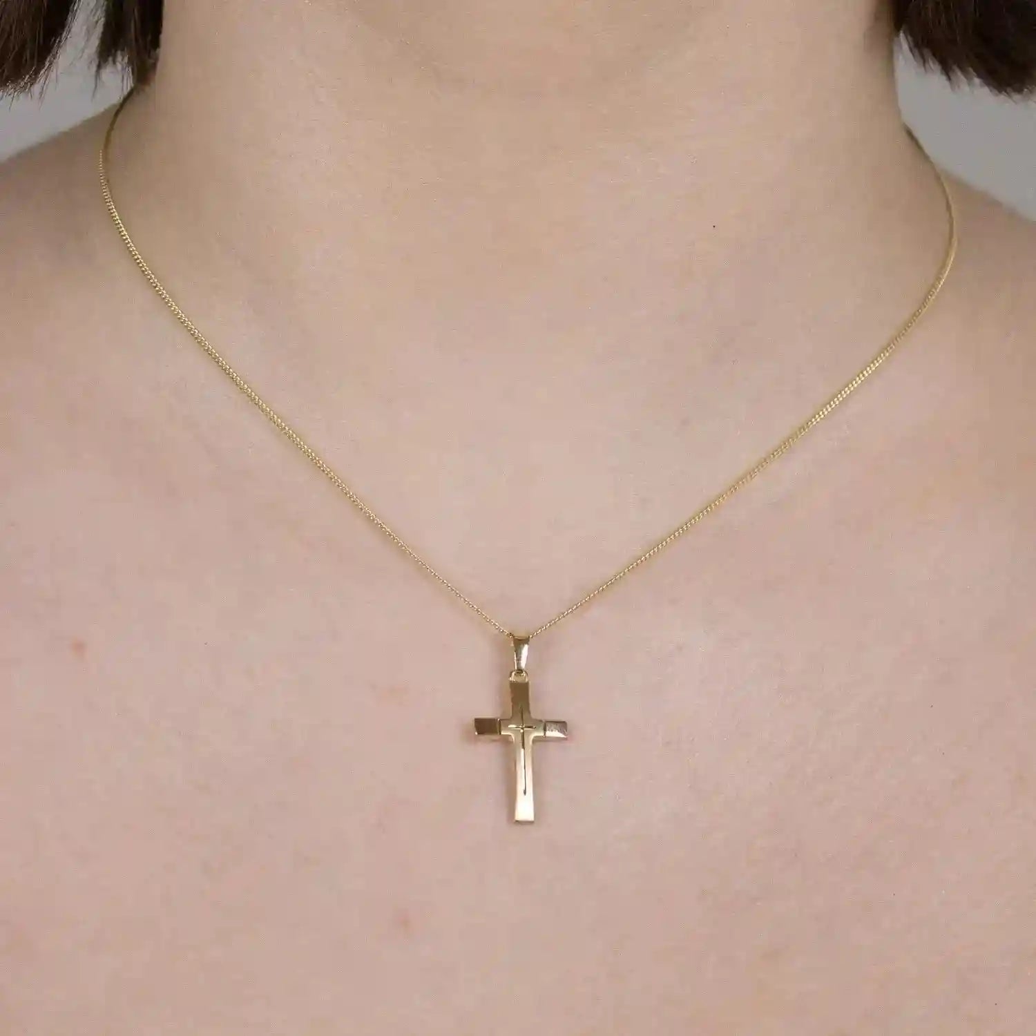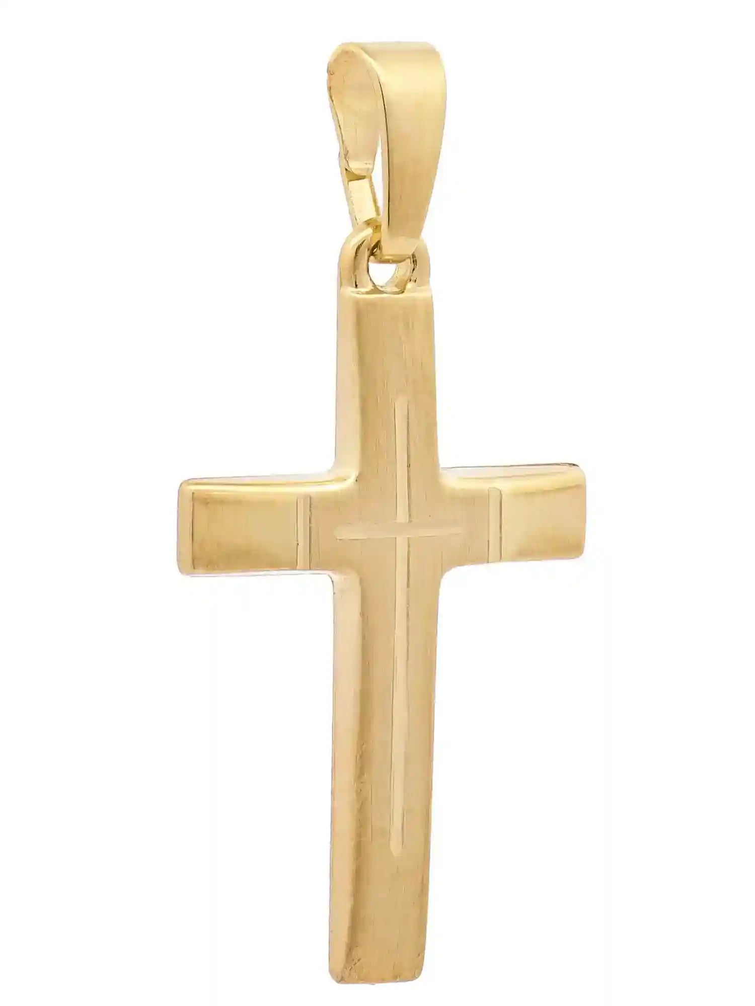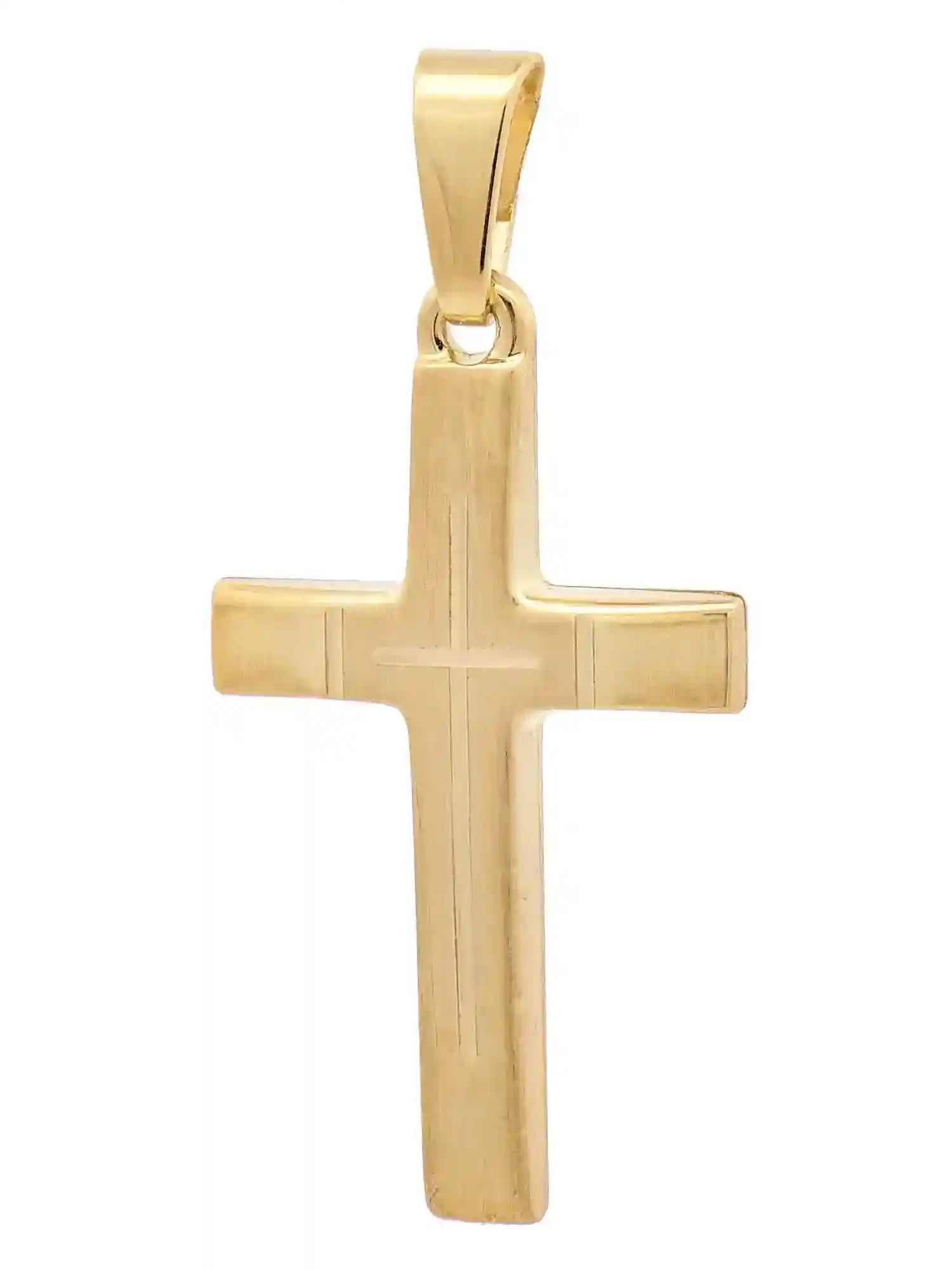 Hochwertiger Gold Anhänger Kettenanhänger Kreuz aus massiv 585 - 14 Karat Gelbgold.