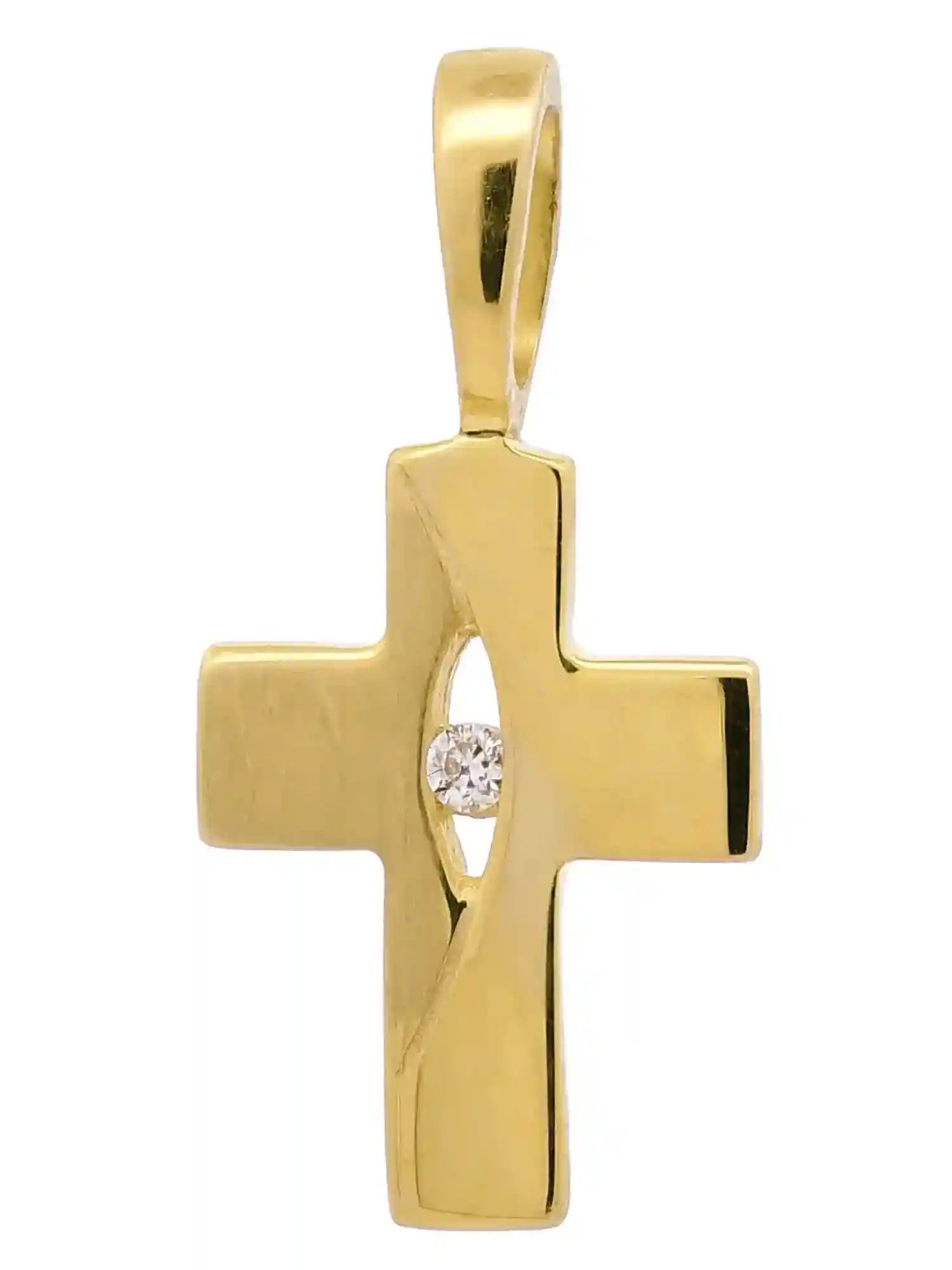 Hochwertiger Gold Anhänger Kettenanhänger Kreuz aus massiv 333 - 8 Karat Gelbgold mit Zirkonia Stein.