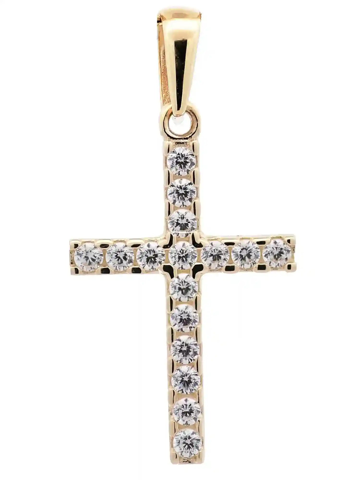 Hochwertiger Gold Anhänger Kettenanhänger Kreuz aus massiv 333 - 8 Karat Gelbgold mit Zirkonia Stein.