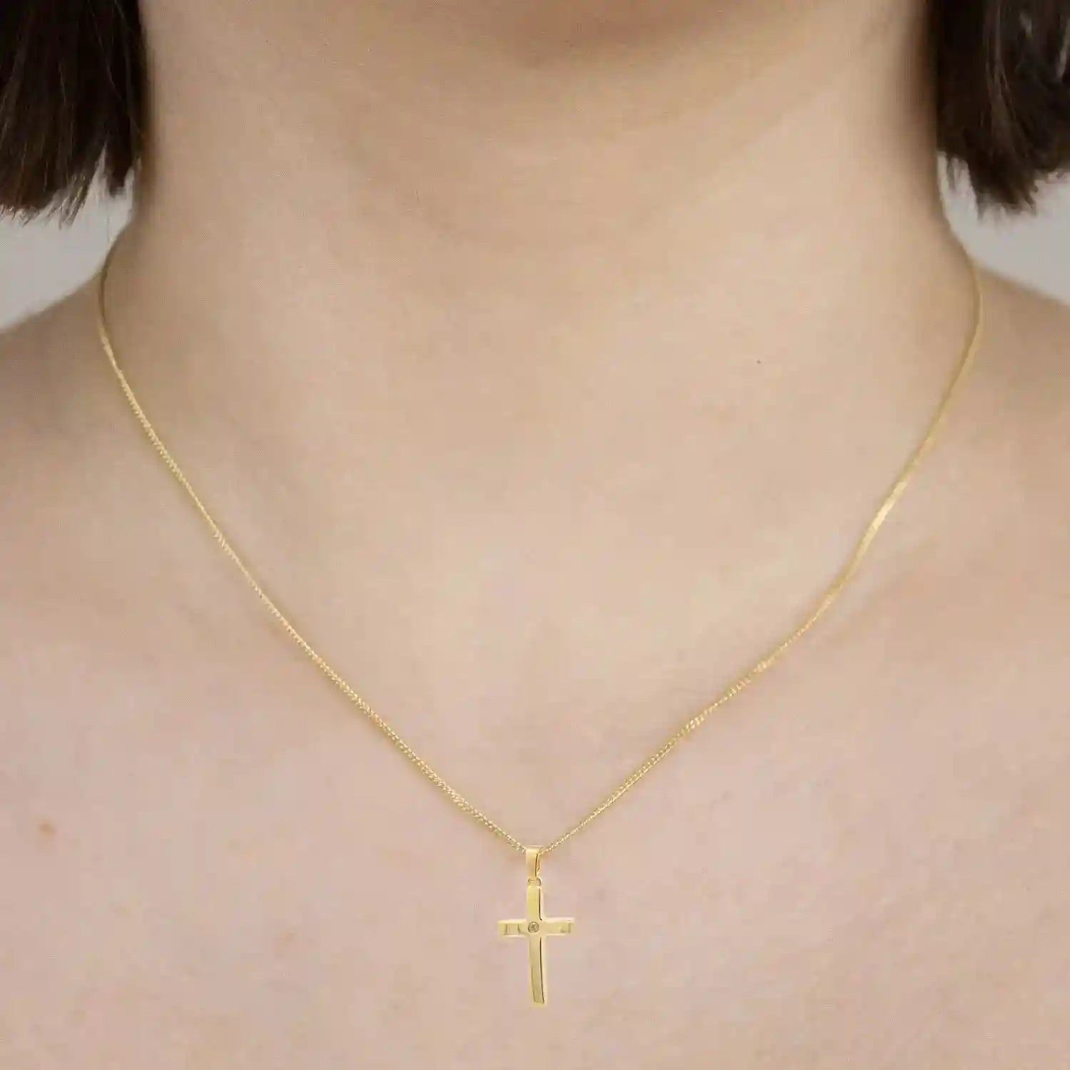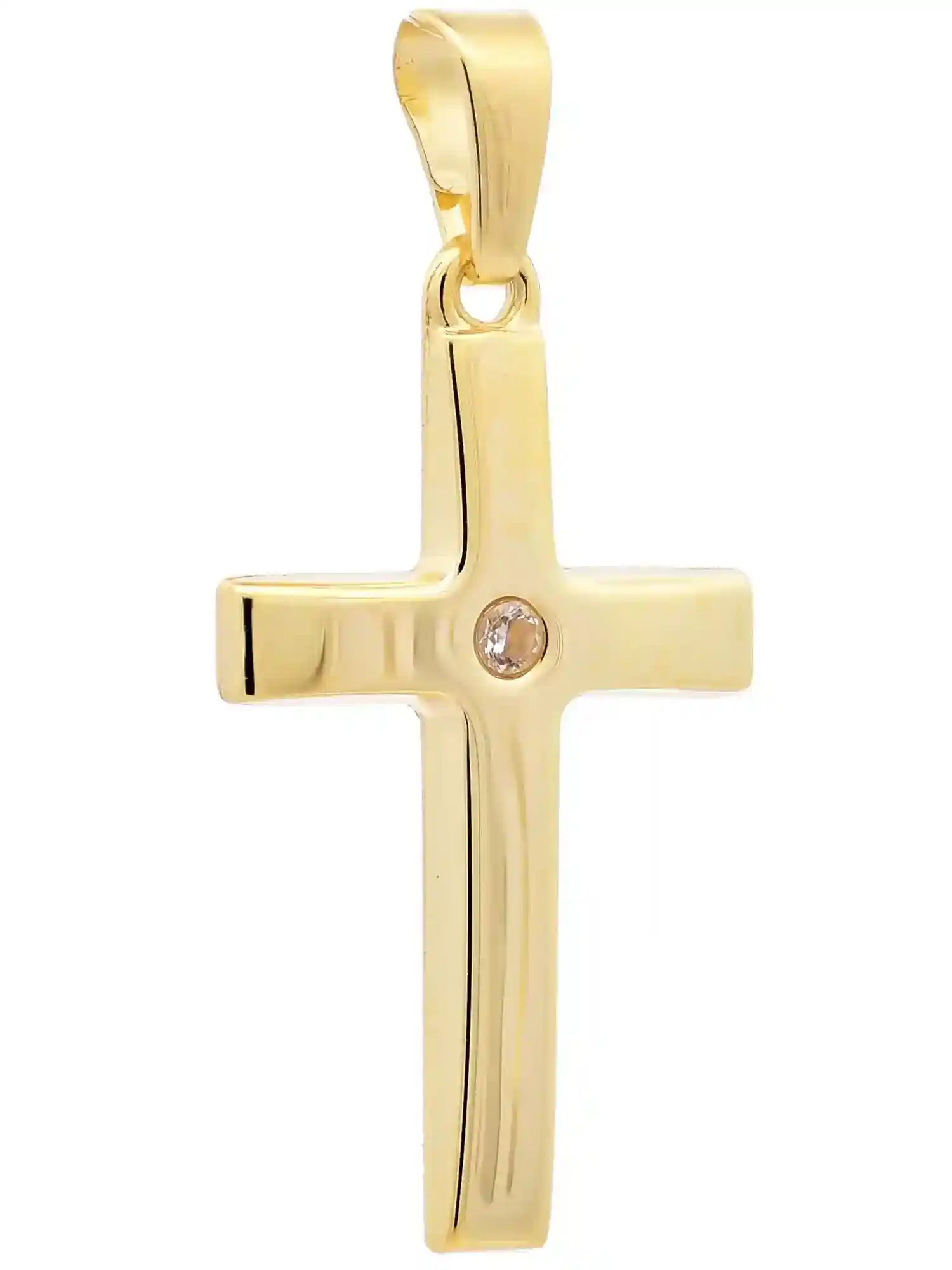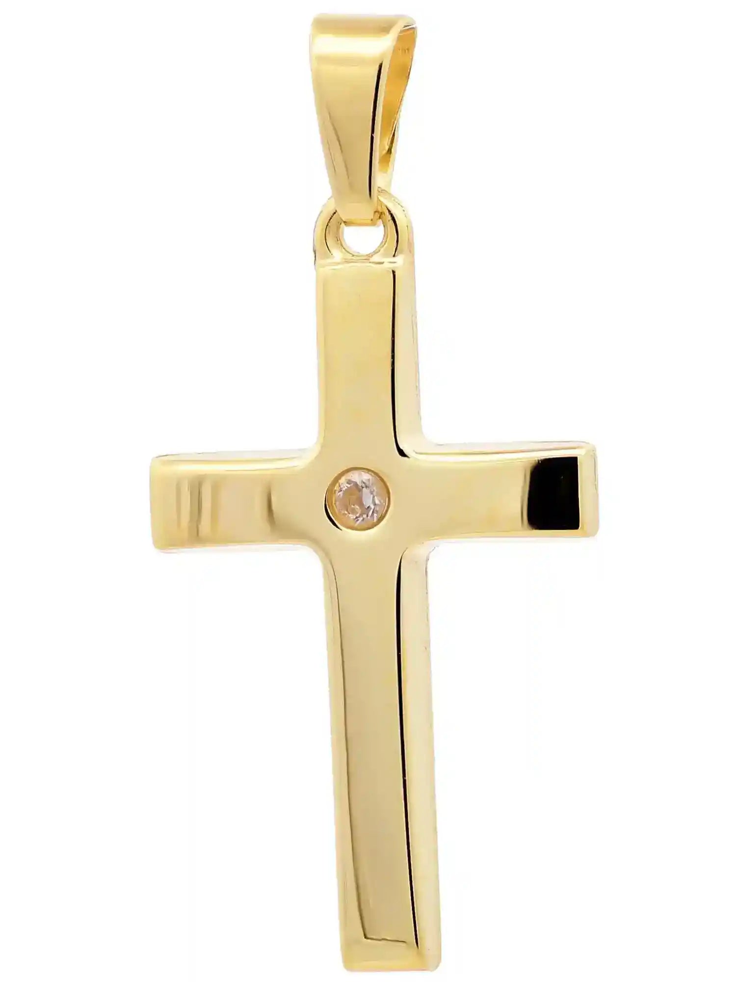 Hochwertiger Gold Anhänger Kettenanhänger Kreuz aus massiv 333 - 8 Karat Gelbgold mit Zirkonia Stein.