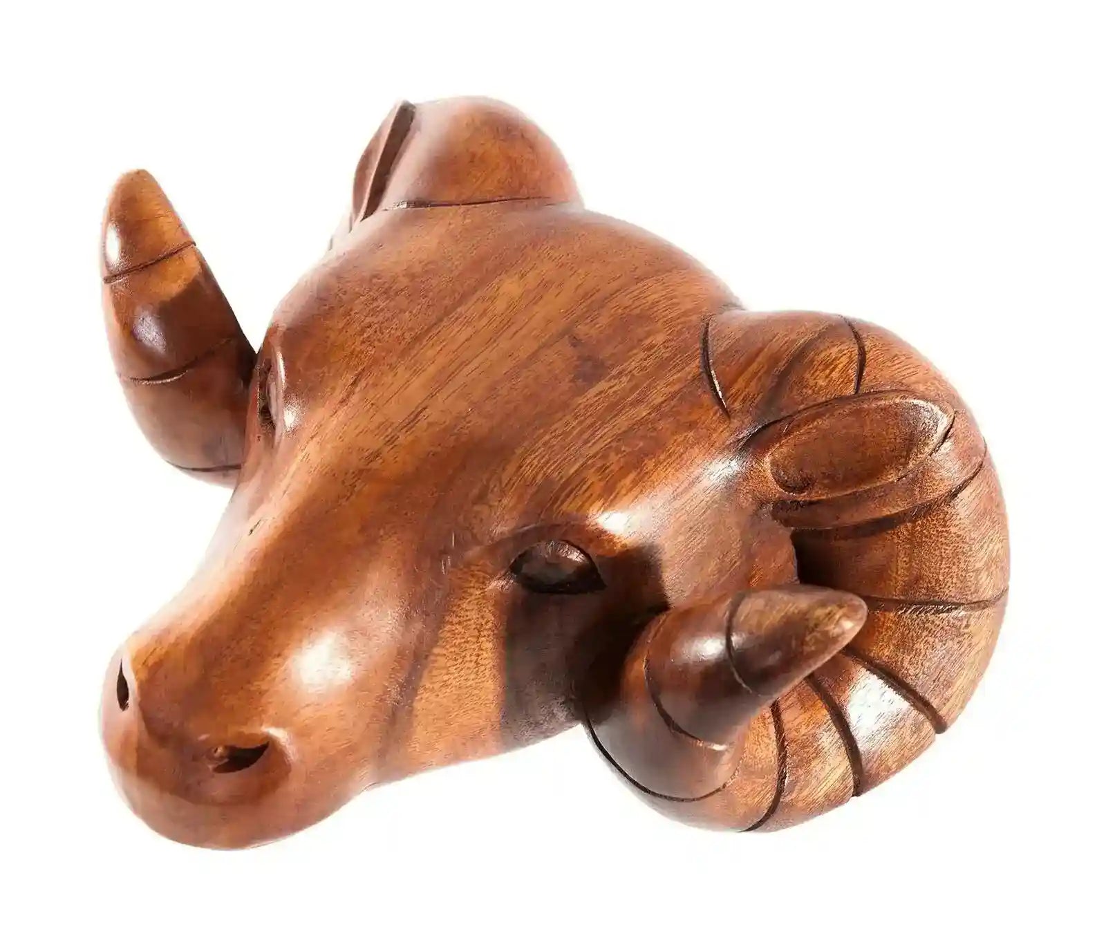 Sehr detaillierter Widderkopf handgefertigt aus Soar Holz.