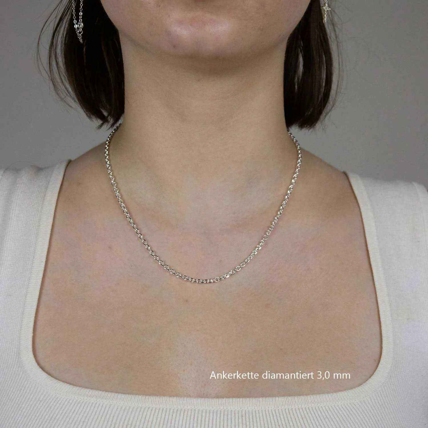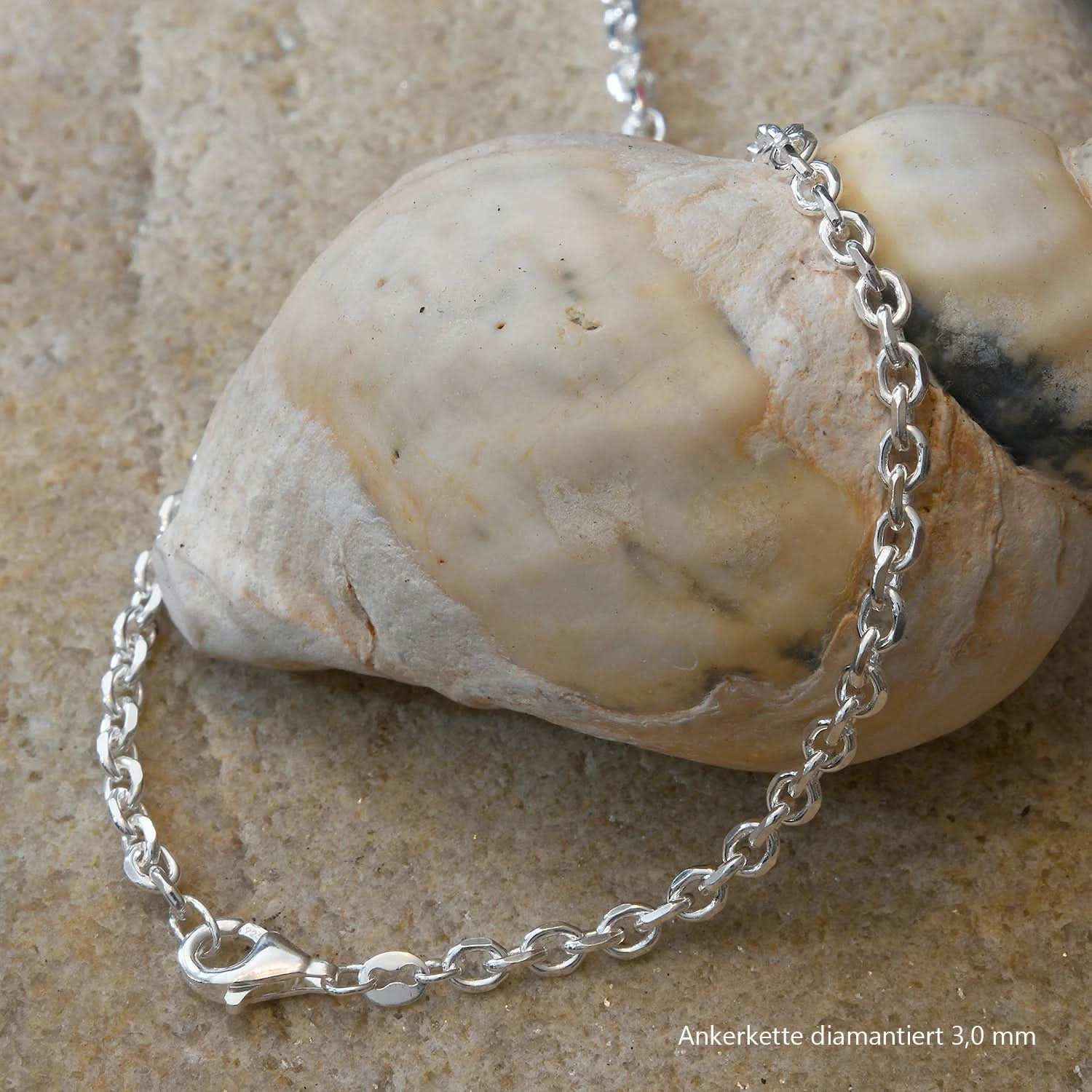 Edle massive Silberkette Ankerkette diamantiert Breite 3,0 mm Halskette aus 925 Sterlingsilber von höchster Qualität – Made in Germany.