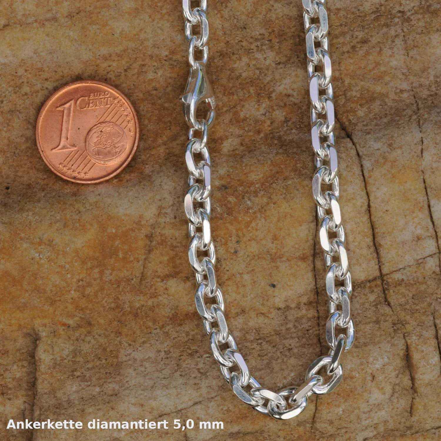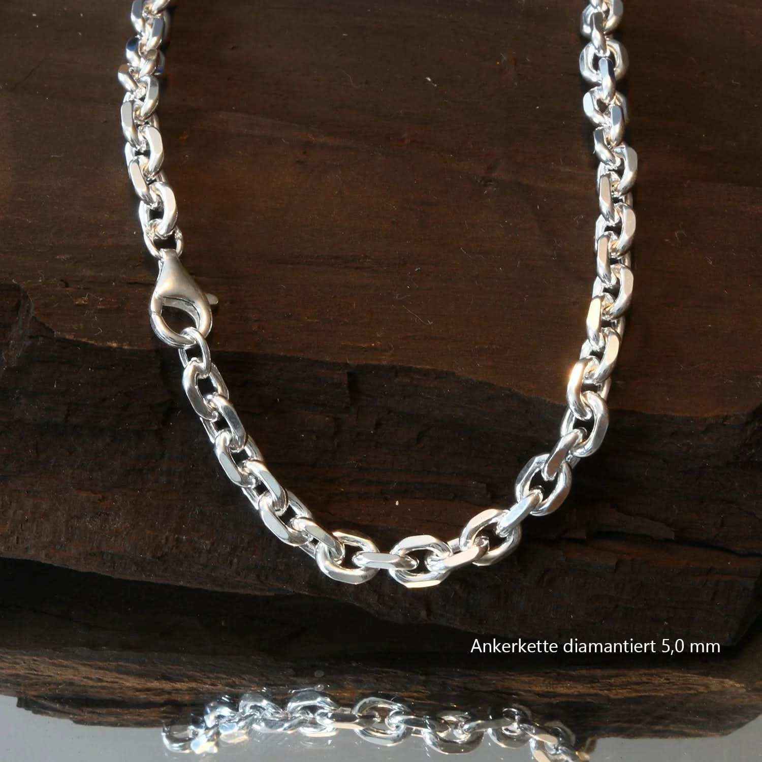 Edle massive Silberkette Ankerkette diamantiert Breite 5,0 mm Halskette aus 925 Sterlingsilber von höchster Qualität – Made in Germany.