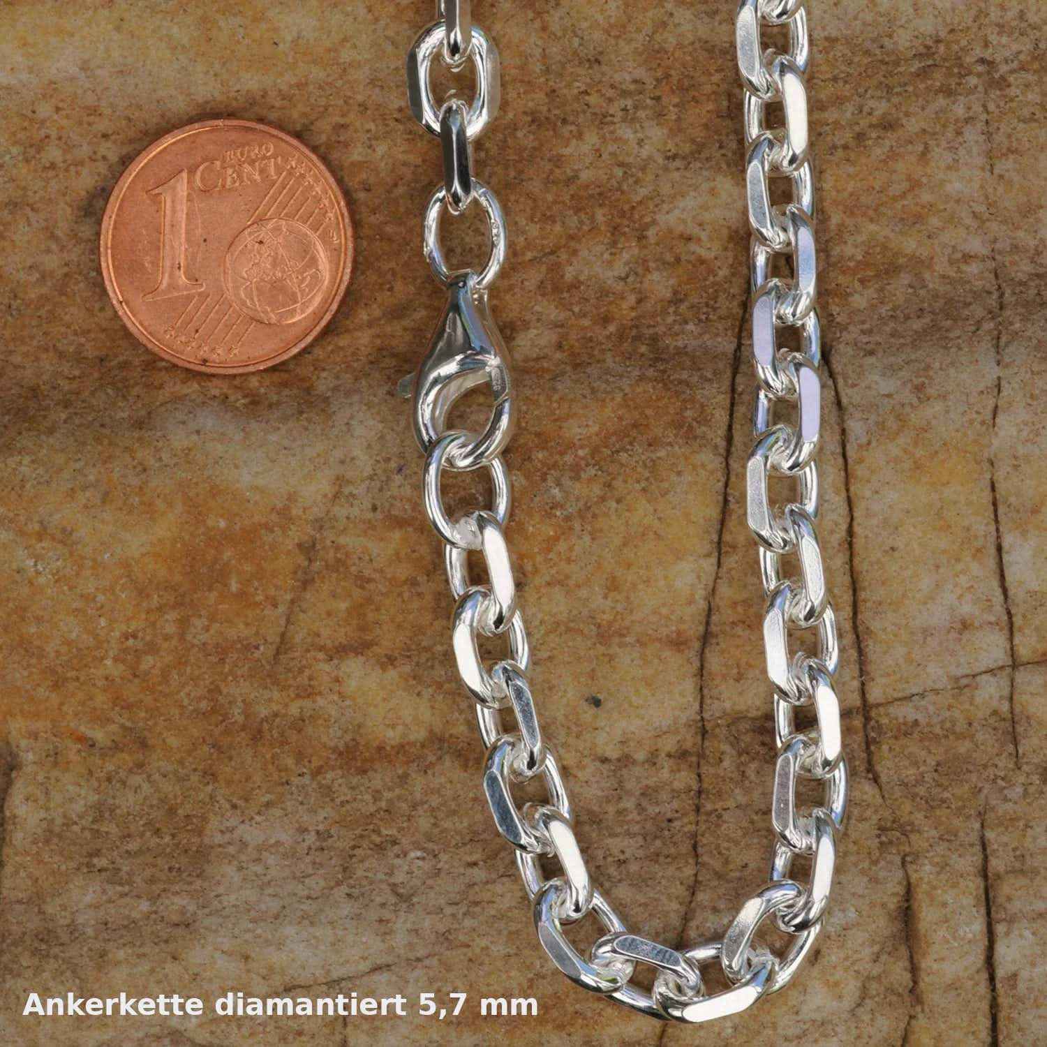 Edle massive Silberkette Ankerkette diamantiert Breite 5,7 mm Halskette aus 925 Sterlingsilber von höchster Qualität – Made in Germany.