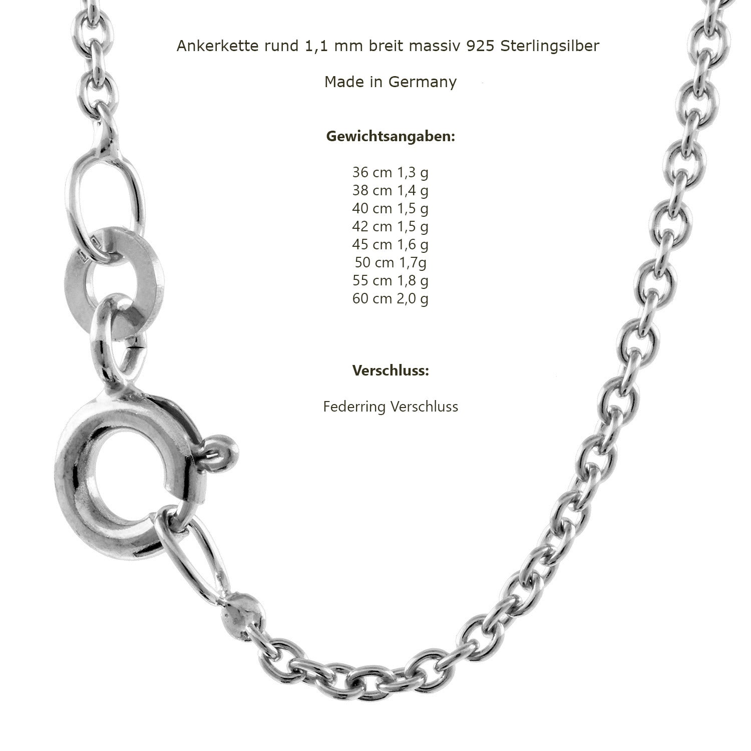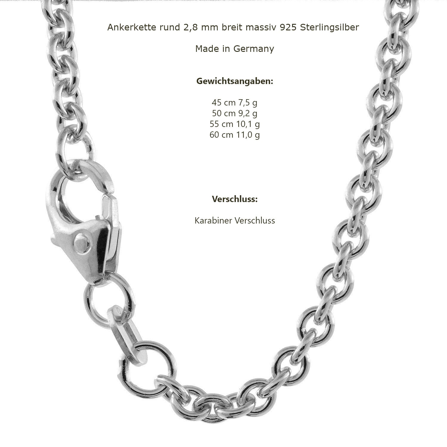 Edle massive Silberkette Ankerkette rund Halskette aus 925 Sterlingsilber von höchster Qualität – Made in Germany.