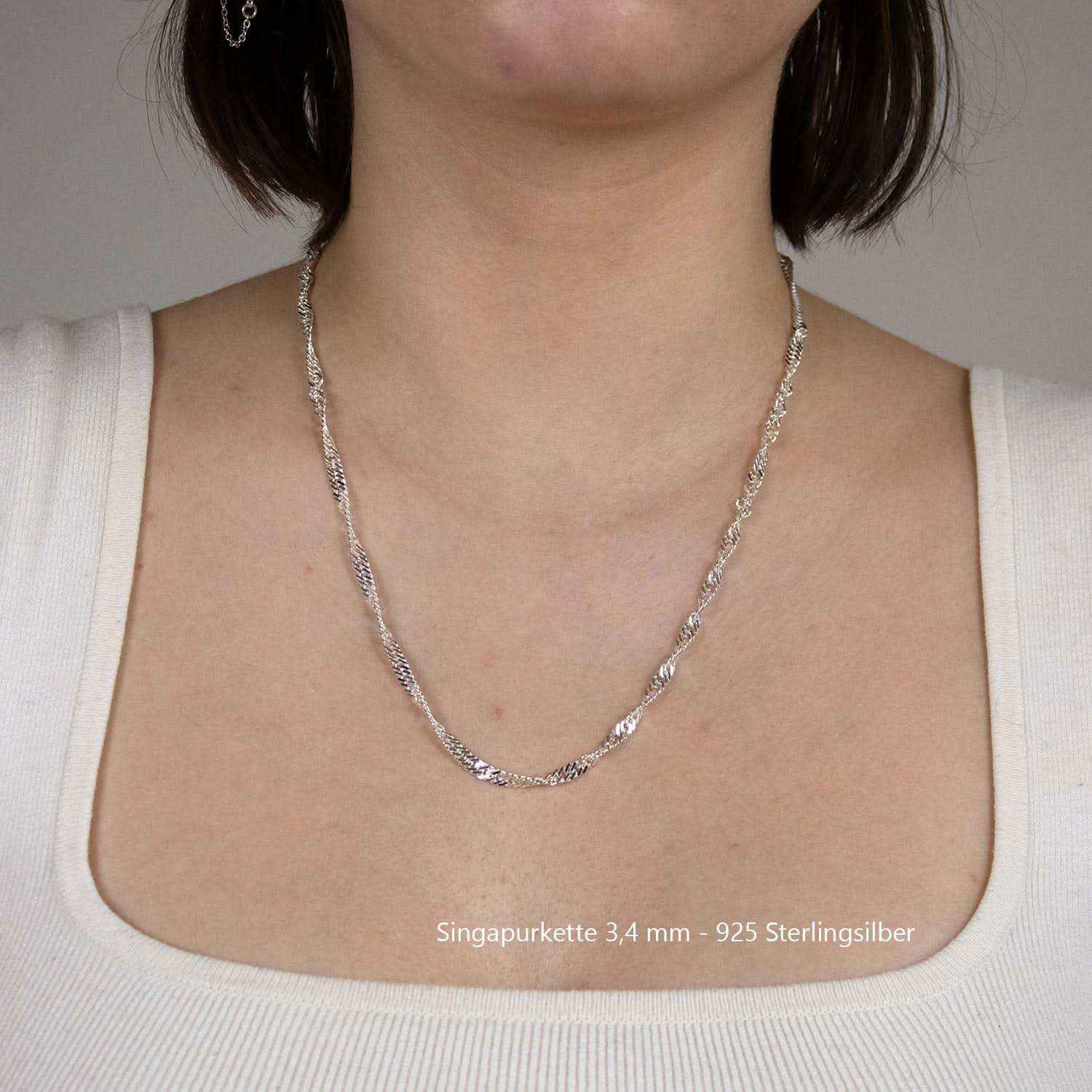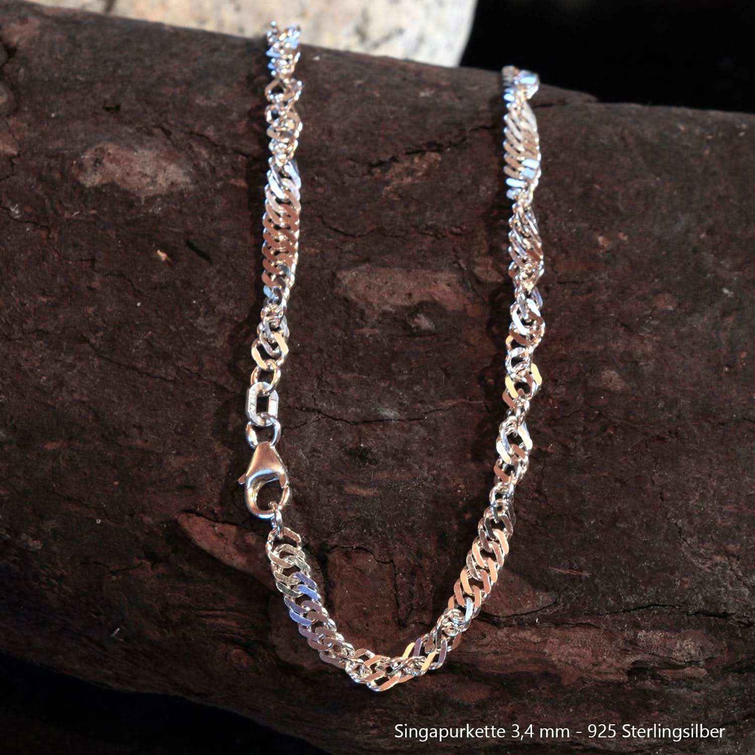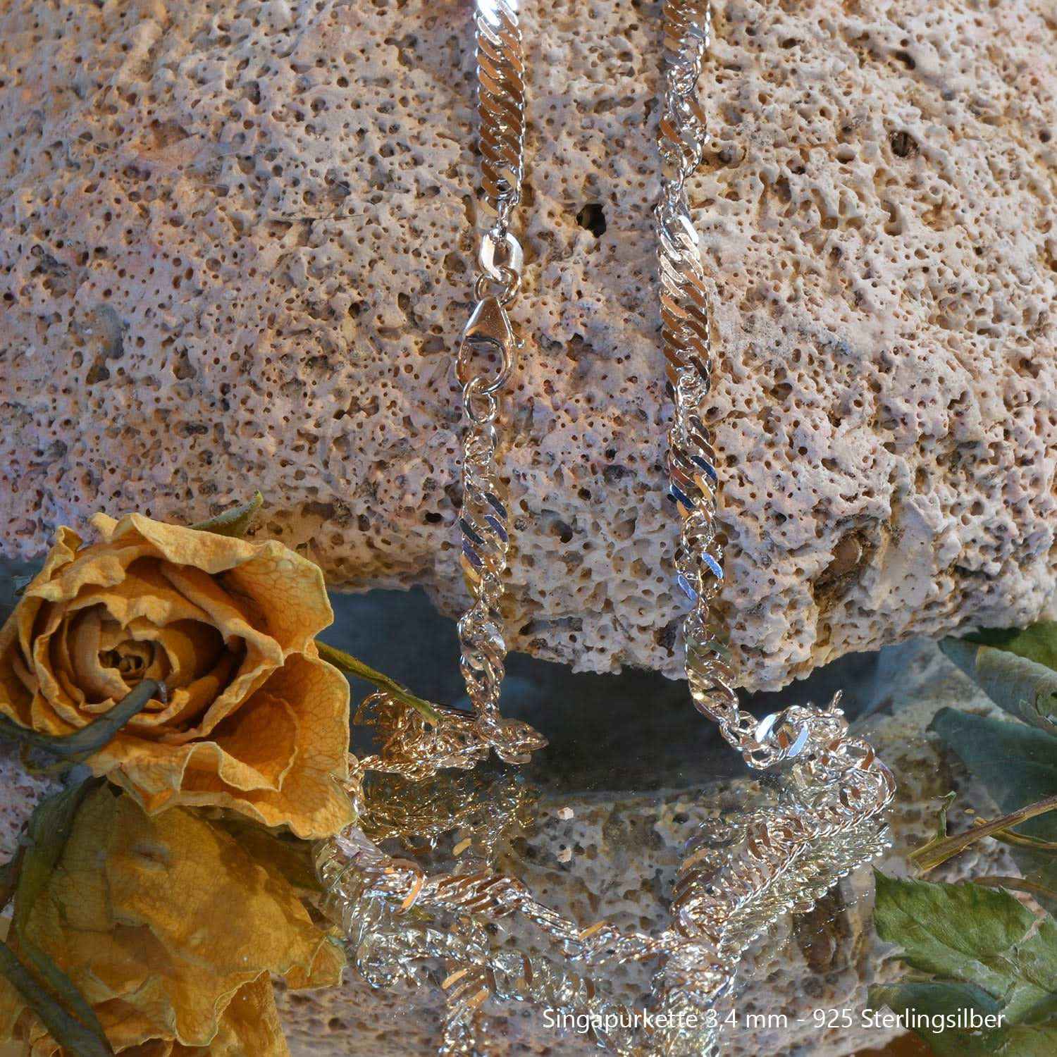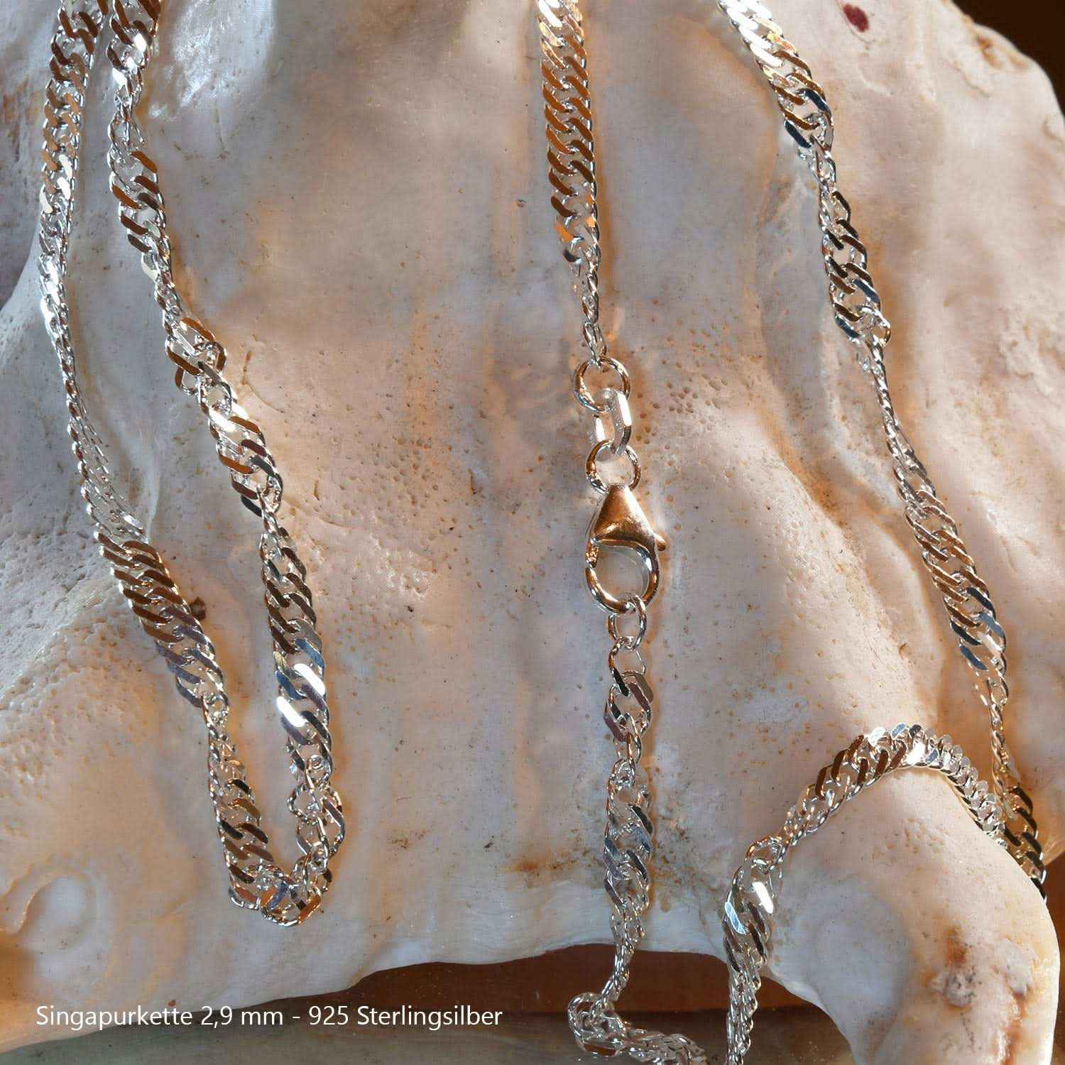 Edle massive Silberkette Singapurkette Halskette aus 925 Sterlingsilber von höchster Qualität – Made in Germany - Länge nach Wahl