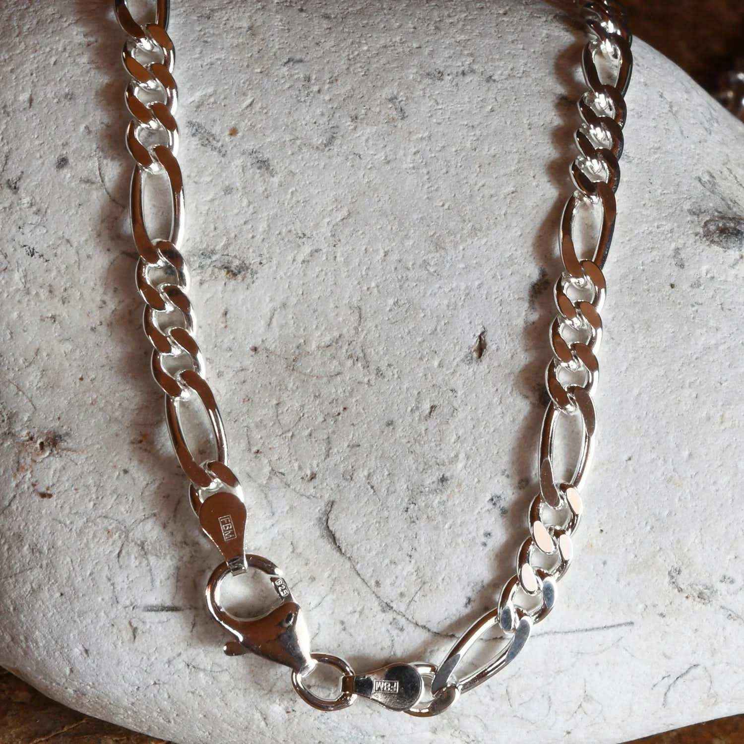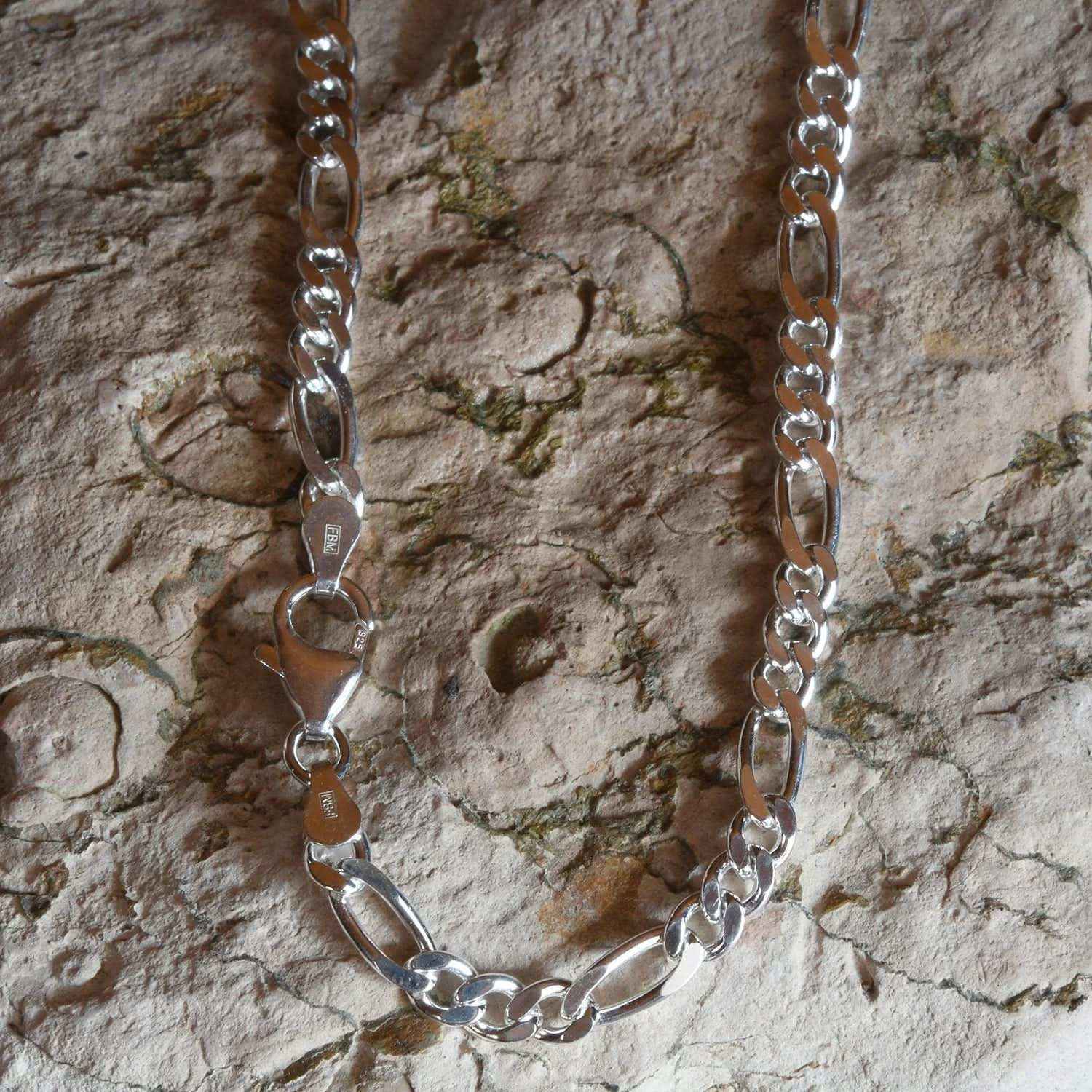 Edle massive Silberkette Figarokette Breite 4,6 mm Halskette aus 925 Sterlingsilber von höchster Qualität – Made in Germany.