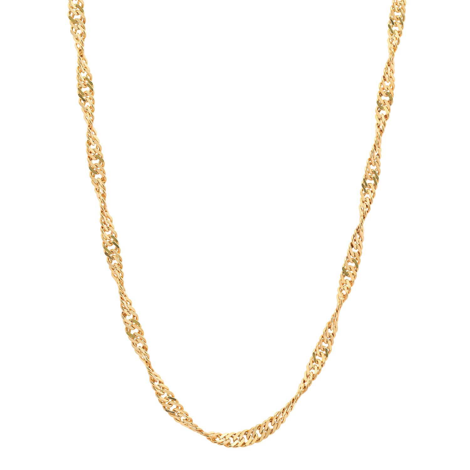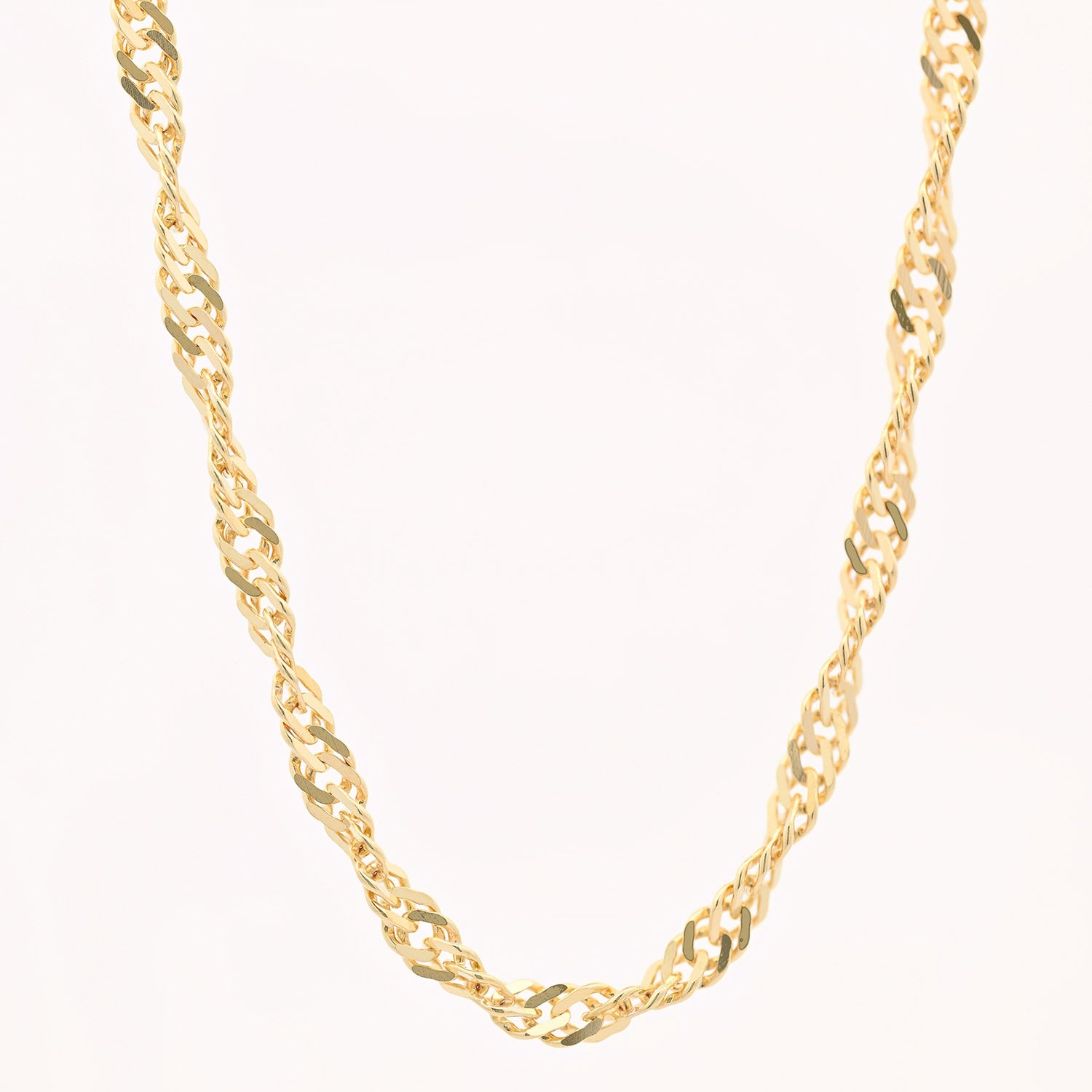 Die Singapurkette ist eine sehr exclusiv wirkende gedrehte Halskette. Sie wird meist von Frauen getragen, und kann mit oder ohne Anhänger verwendet werden. Das Licht wird bei der Singapurkette aus allen Richtungen reflektiert wodurch diese Kette besonders elegant funkelt. Sie wird deshalb gerne zu besonderen Anlässen getragen. Bei der Singapurkette wird die Kette nochmals bearbeitet. Dabei wird die Kette mittels rotierender Diamanten geschliffen und erhält dadurch einen noch edleren Glanz und glitzert noch mehr.
