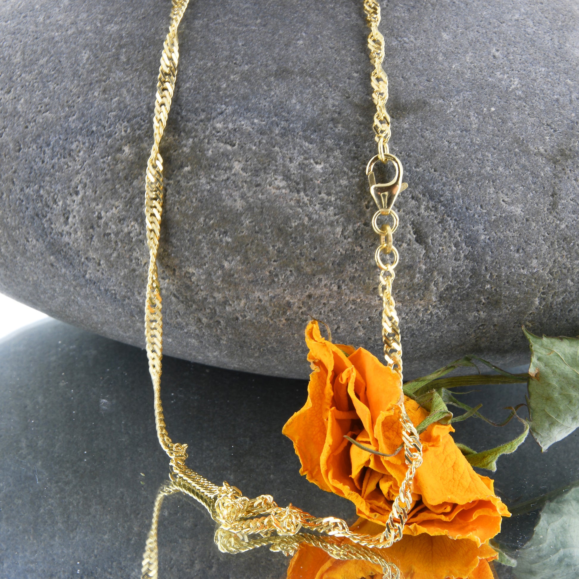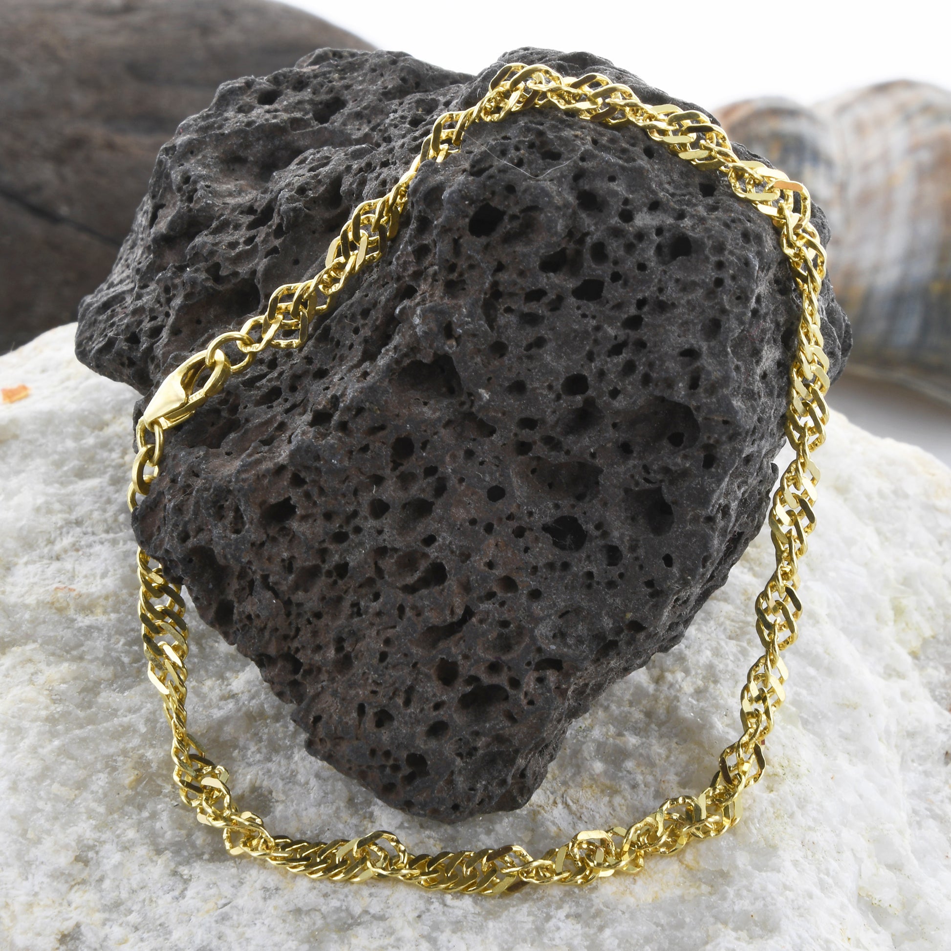 Bei unseren Ketten handelt es sich um eine solide, edle, massive und sehr hochwertige Ausführung in Juwelierqualität. Natürlich ist die Kette gestempelt. Die Singapurkette ist absolut präzise gearbeitet und sehr bequem zu tragen.Sie ist hochglanzpoliert für ein noch edleres Erscheinungsbild.