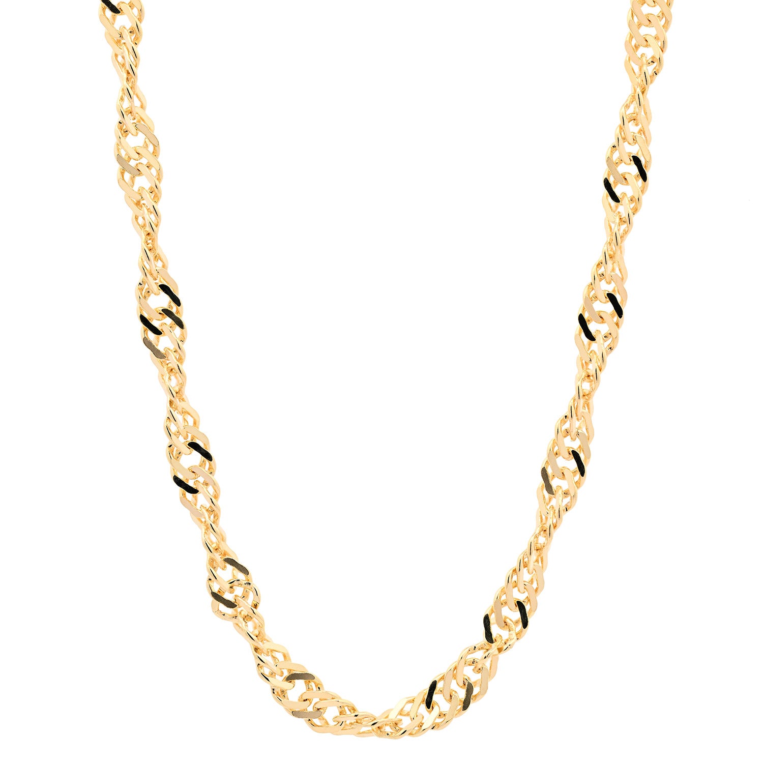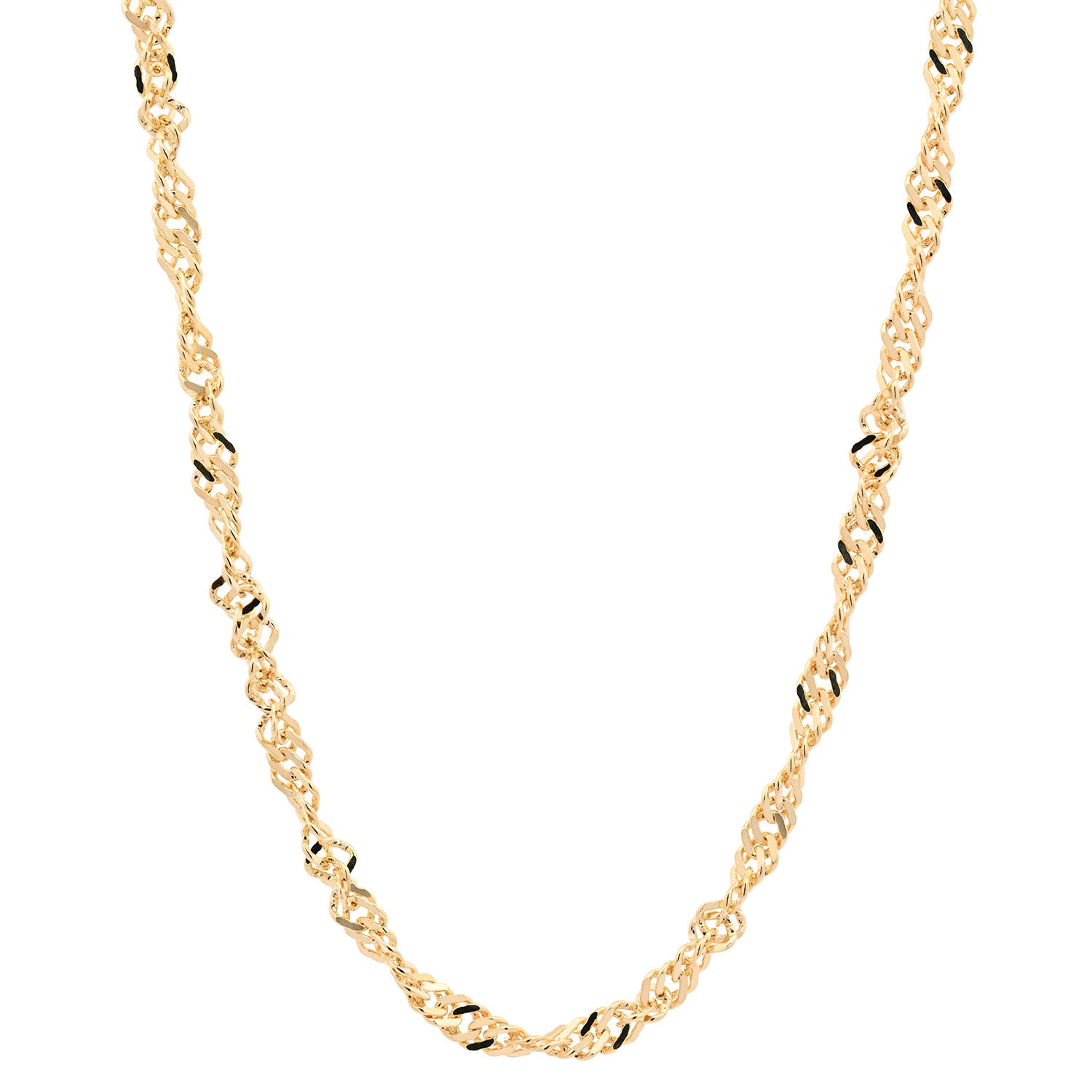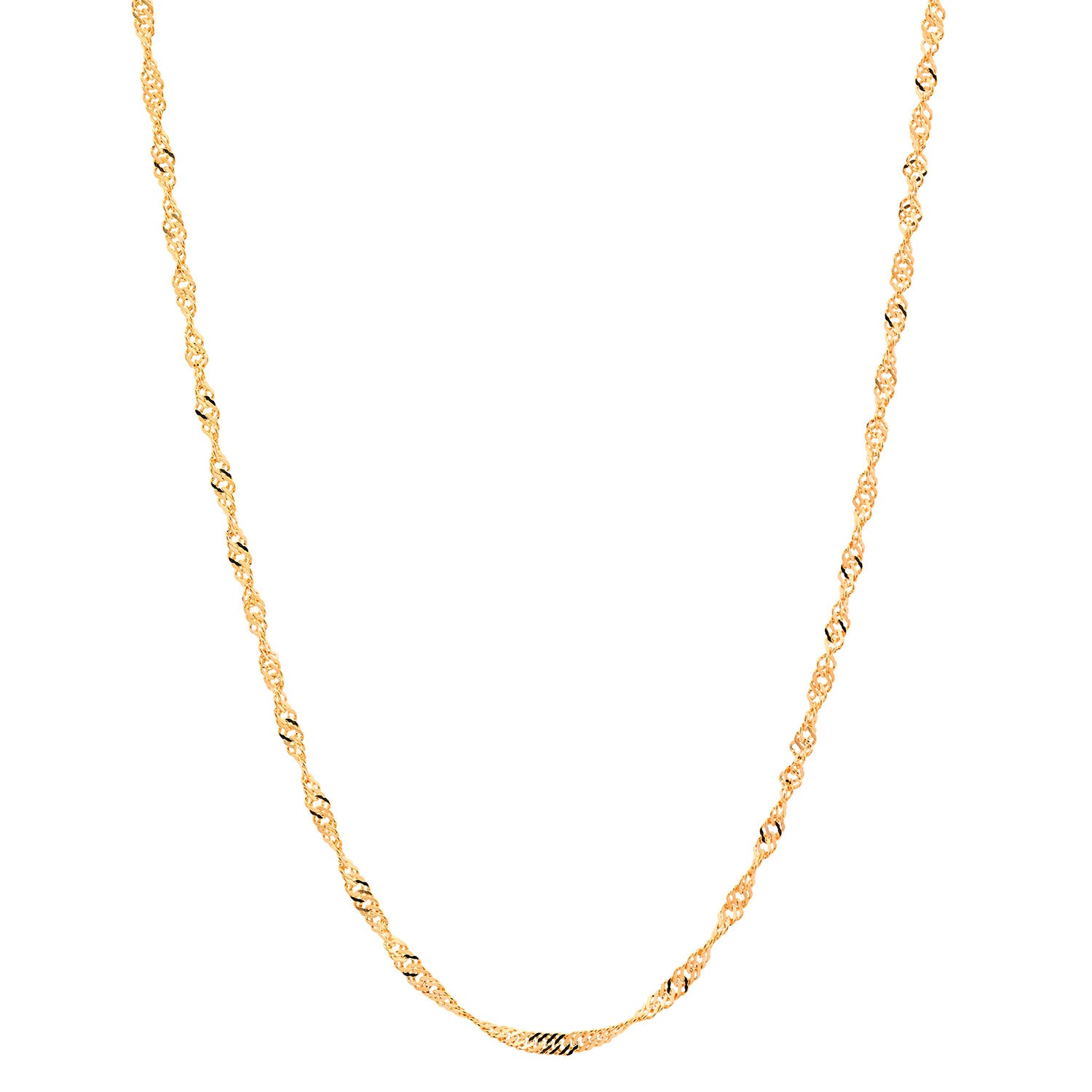 Die Singapurkette ist eine sehr exclusiv wirkende gedrehte Halskette. Sie wird meist von Frauen getragen, und kann mit oder ohne Anhänger verwendet werden. Das Licht wird bei der Singapurkette aus allen Richtungen reflektiert wodurch diese Kette besonders elegant funkelt. Sie wird deshalb gerne zu besonderen Anlässen getragen. Bei der Singapurkette wird die Kette nochmals bearbeitet. Dabei wird die Kette mittels rotierender Diamanten geschliffen und erhält dadurch einen noch edleren Glanz und glitzert noch mehr.