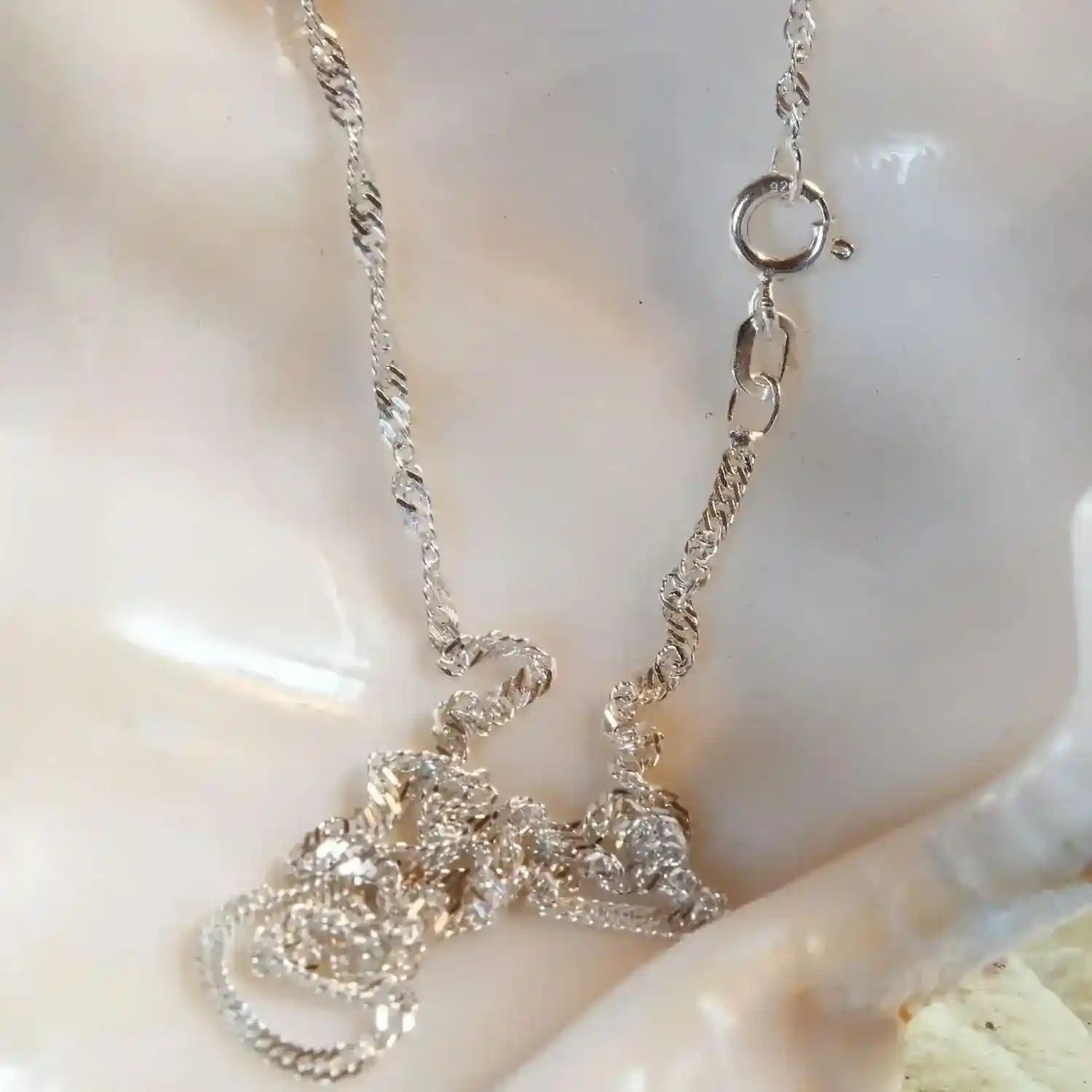 Die Singapurkette ist eine sehr exclusiv wirkende gedrehte Halskette. Sie wird meist von Frauen getragen, und kann mit oder ohne Anhänger verwendet werden. Das Licht wird bei der Singapurkette aus allen Richtungen reflektiert wodurch diese Kette besonders elegant funkelt. Sie wird deshalb gerne zu besonderen Anlässen getragen. Bei unseren Ketten handelt es sich um eine solide, edle, massive und sehr hochwertige Ausführung in Juwelierqualität. Natürlich sind die Ketten gestempelt. Die Singapurkette ist absolut präzise gearbeitet und sehr bequem zu tragen. Sie ist diamantiert. Dabei wird die Kette mittels rotierender Diamanten geschliffen und erhält dadurch einen noch edleren Glanz. Alle die Ketten sind durch eine Oberflächenbehandlung anlaufgeschützt und danach hochglanzpoliert für ein noch edleres Erscheinungsbild.