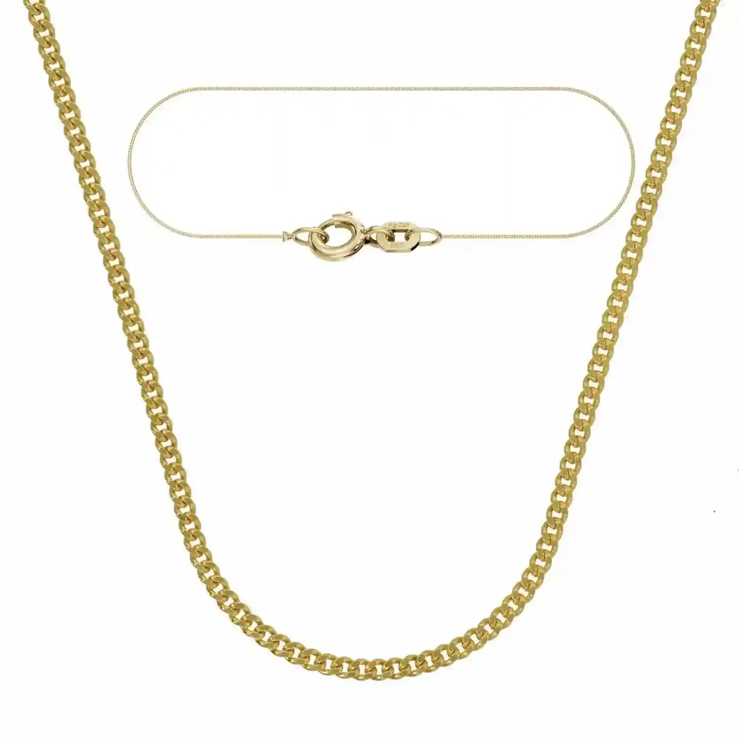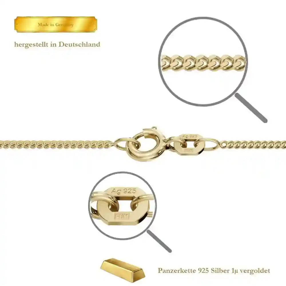 Edle vergoldete Panzerkette aus 925 Sterlingsilber, 36-70 cm lang - 1,4 mm breit - 1,0 µ vergoldet von höchster Qualität – Made in Germany